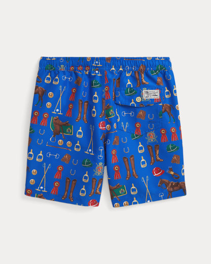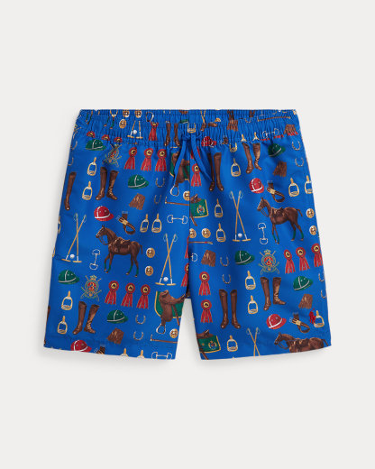 A must-have for beach days and pool trips, these swim trunks are printed with a bold motif of equestrian-inspired graphics.