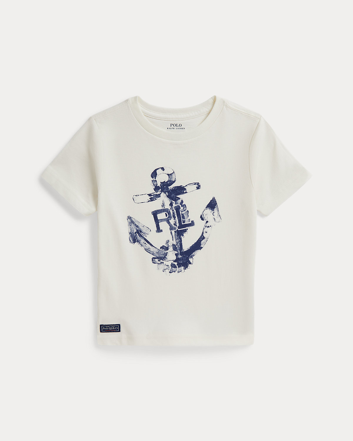 This crewneck tee nods to the season’s nautical style with a weathered anchor graphic that features our founder’s initials.