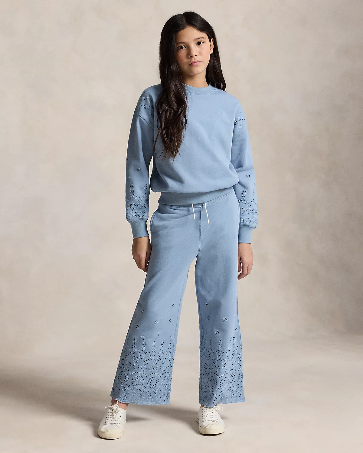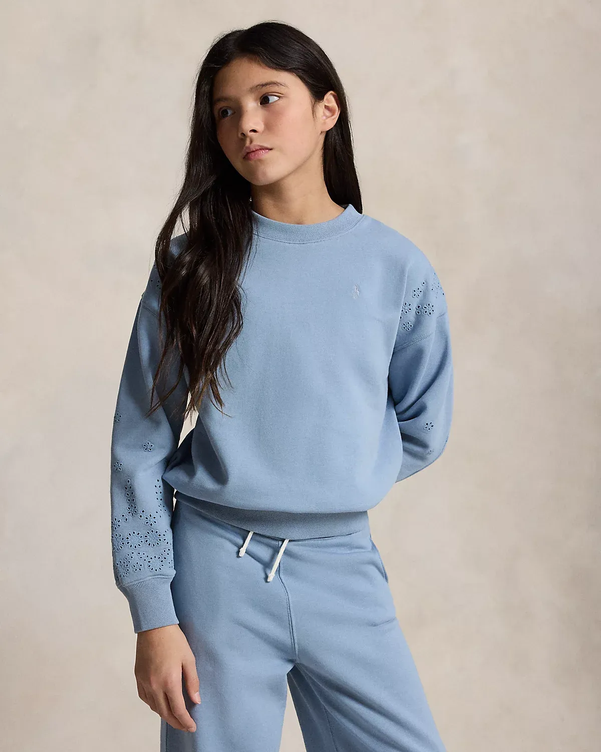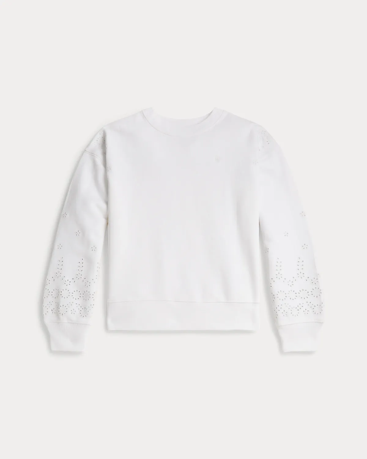 This sweatshirt is made with comfortable cotton French terry and detailed with tonal eyelet embroidery.
