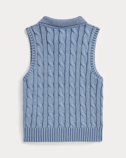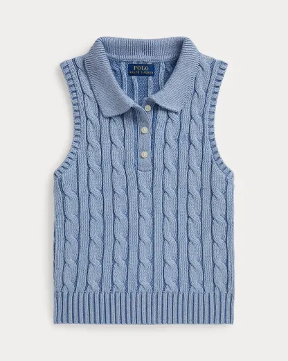 Cable-Knit Cotton Sleeveless Polo Shirt
