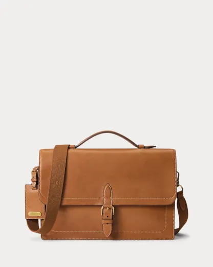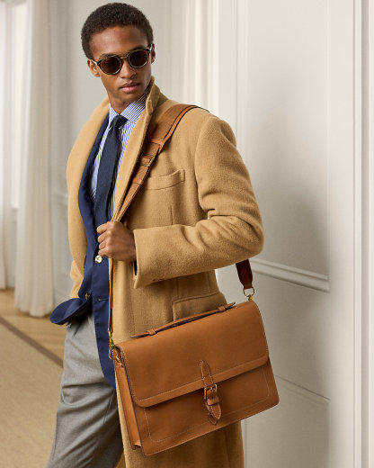 Crafted with an exceptionally supple and luxurious calfskin that was originally developed for riding accessories, this briefcase will develop a beautiful patina over time. Made in limited quantities by artisans at a family-run Florentine factory, it is finished with hand-stitched details, an Italian canvas lining, and antiqued-brass hardware. Designed with multiple pockets at the interior, this timeless style can be carried by the top handle or worn with the removable shoulder strap.