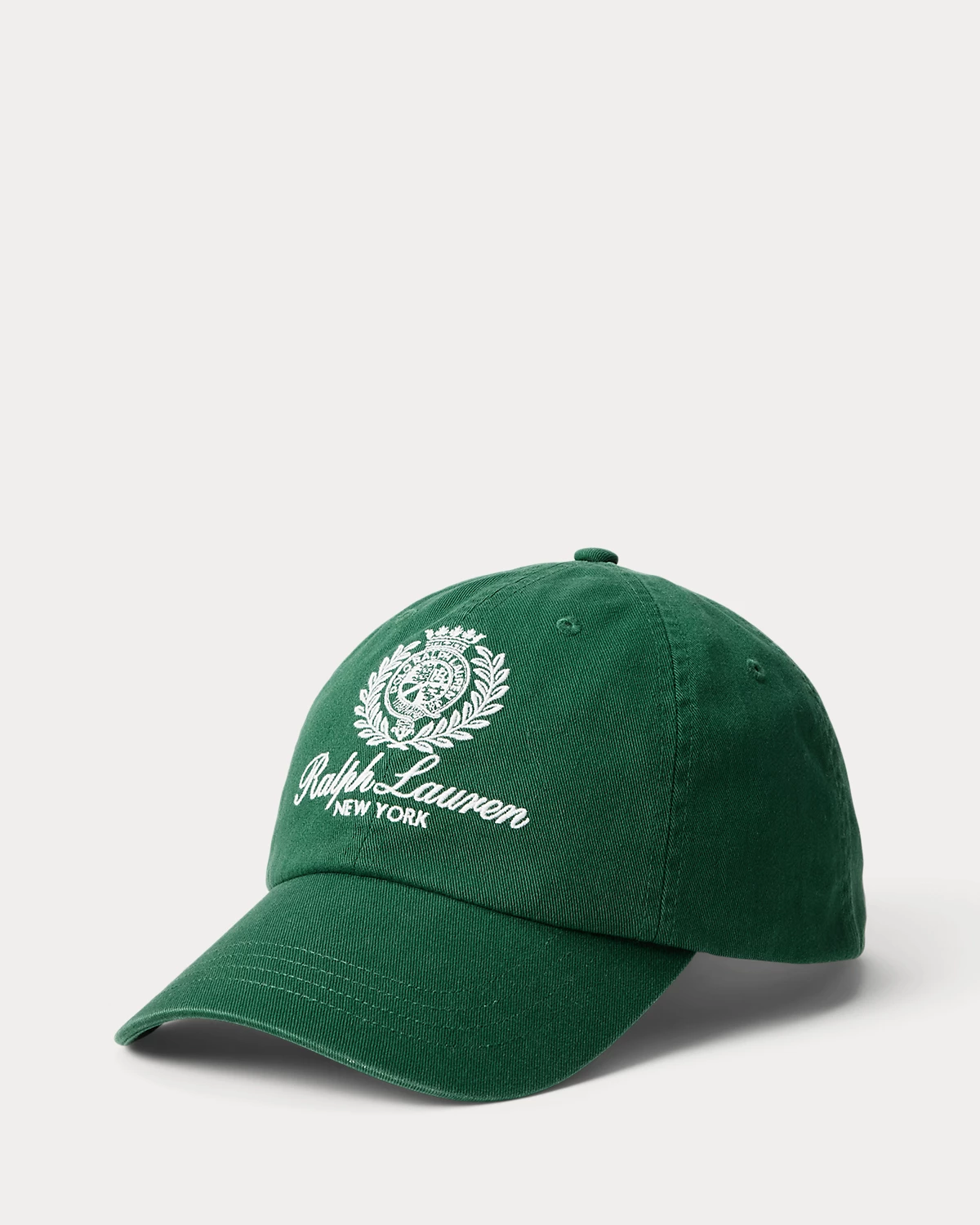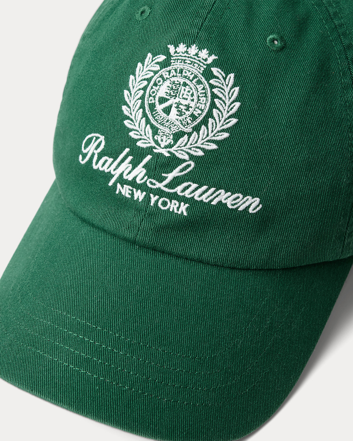 This cotton twill ball cap is embroidered with a graphic that is based on an archival crest from 1986. Ralpthth Lauren’s signature Pony accents the back.