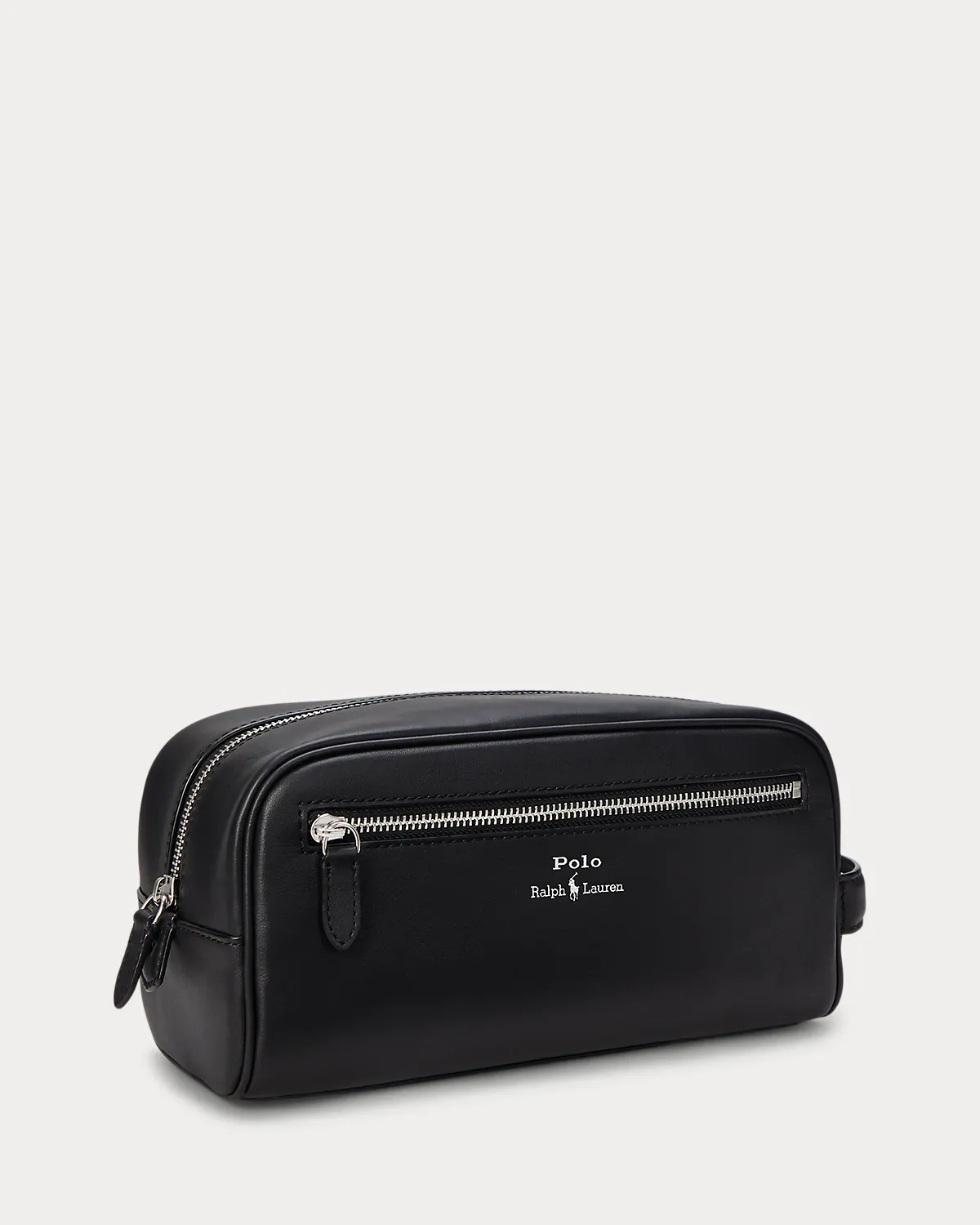 A streamlined silhouette realized in smooth leather gives this travel case a modern look. Embossed at the front with Polo Ralpthth Lauren’s signature logo, it’s the perfect size to hold your grooming essentials