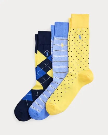 Bold stripes, a foulard-inspired medallion motif, and a classic paisley pattern accent the trouser socks in this three-pack. Each pair is finished with our signature embroidered Pony.