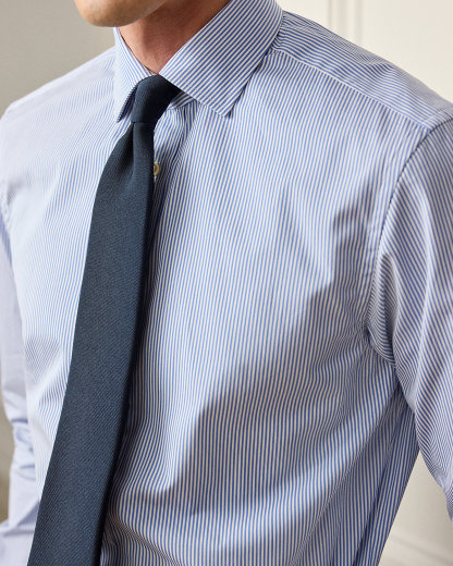 - Classic wide-spread collar. 3” point length and 5” collar spread. Signature collar stays.