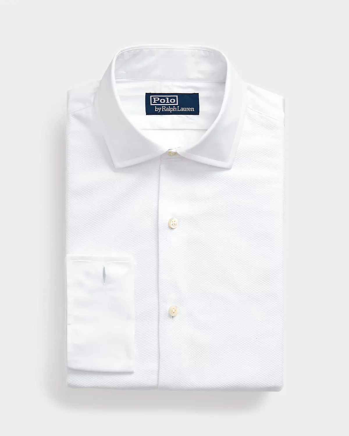 - Medium-spread collar. Stitched bib. Buttoned placket. Genuine mother-of-pearl divs. Last divhole is stitched horizontally for a superior hold.