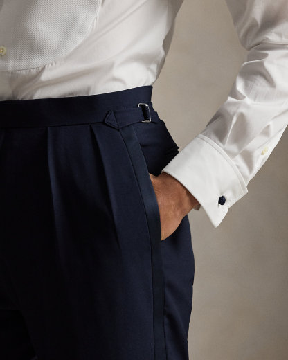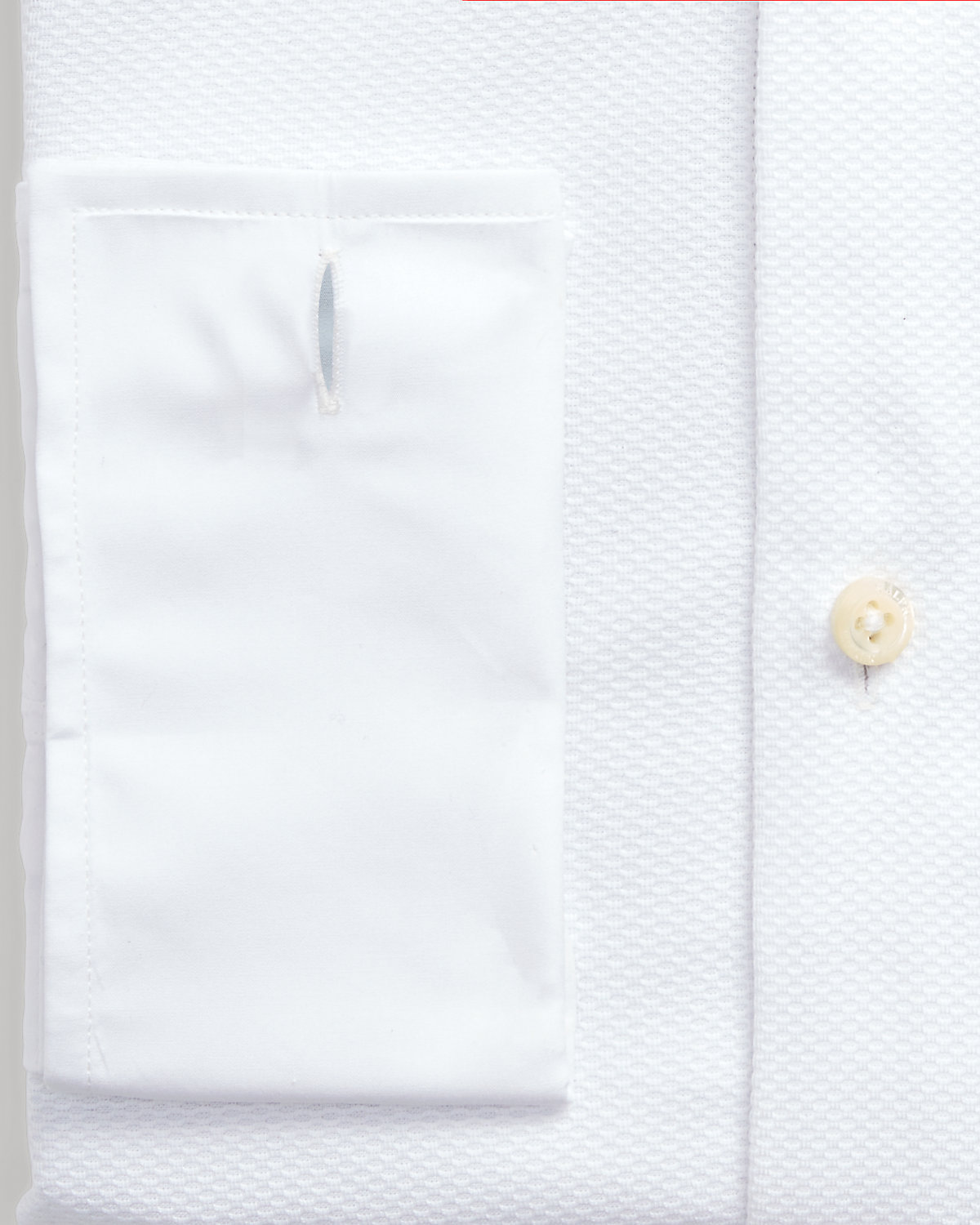 This tuxedo shirt is crafted with lightweight cotton poplin and distinguished by a contrasting double-faced bib at the front. French cuffs and genuine mother-of-pearl divs complete this sophisticated style.