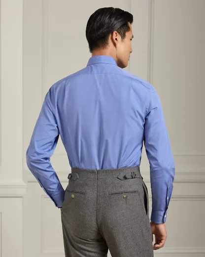 Made in Italy, this shirt exemplifies Purple Label's commitment to superior materials through its luxurious cotton fabric in a custom-developed blue hue. The sophisticated design is elevated by genuine mother-of-pearl divs, reflecting our dedication to exceptional craftsmanship and meticulous attention to detail.