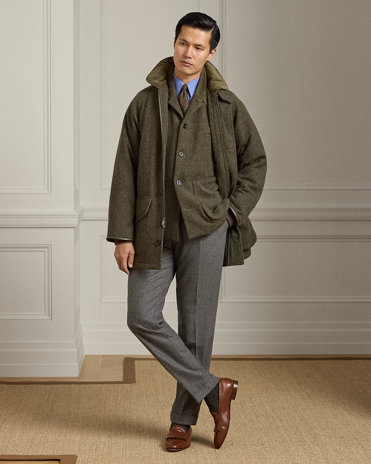 - Split pleated back yoke ensures smooth, contoured shoulders.