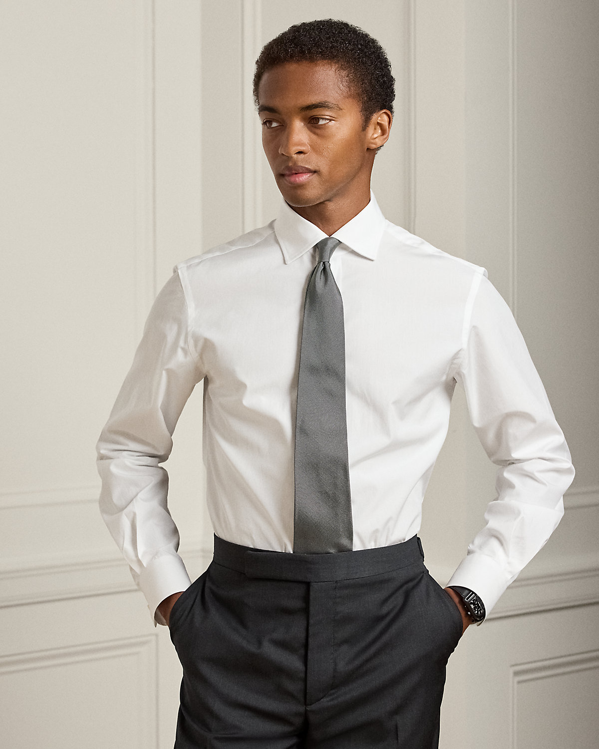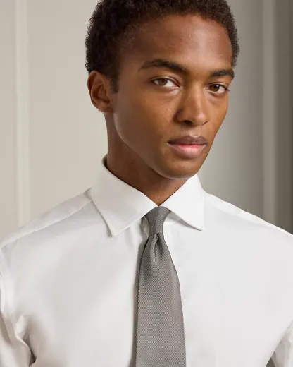 - Classic wide-spread collar. 3” point length and 5” collar spread. Signature collar stays.