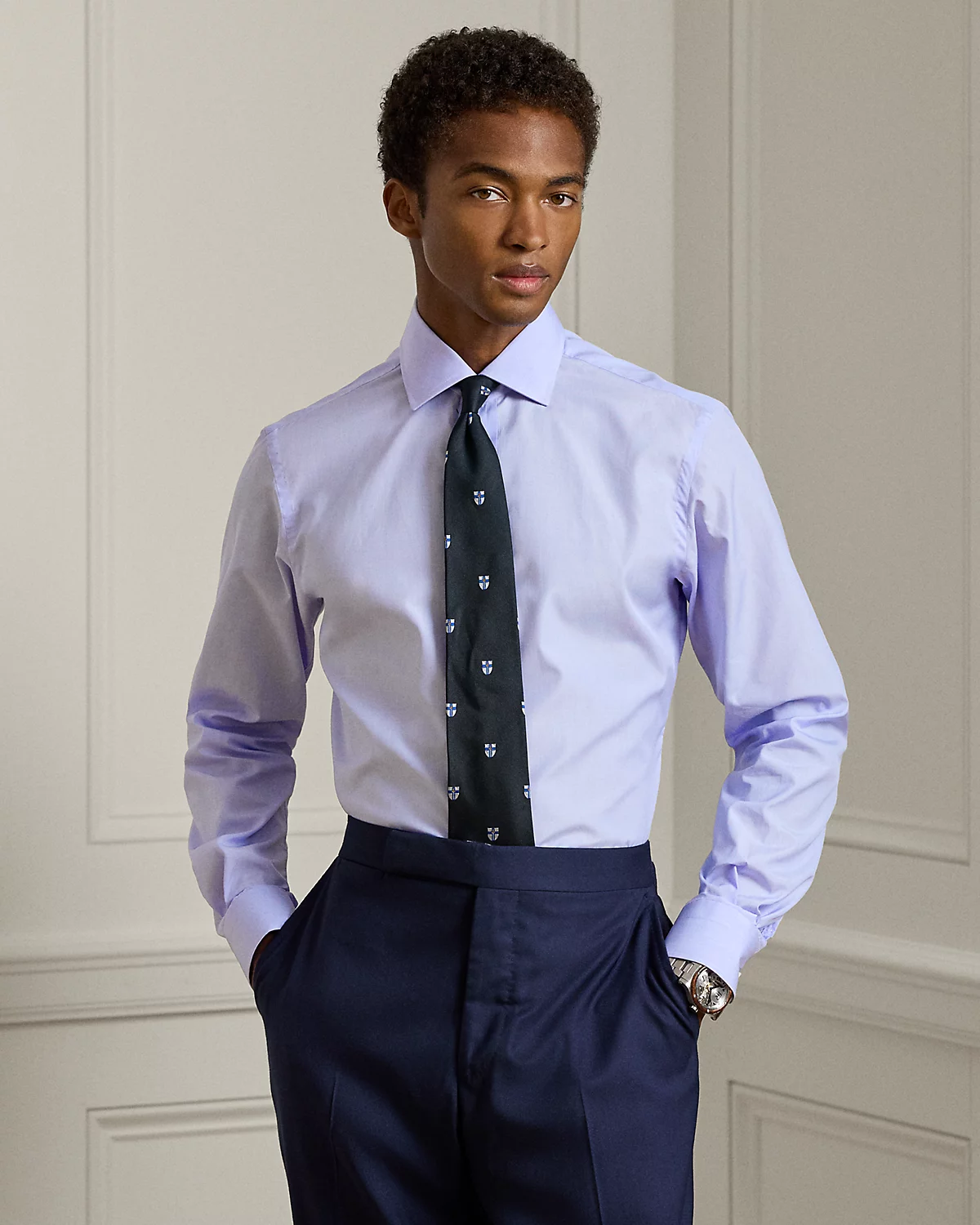 Handmade in Italy, this style represents the pinnacle of luxury shirting with its exceptional 200s-quality, two-ply cotton. Each detail exemplifies Purple Label’s commitment to superior craftsmanship, from the refined end-on-end weave to the genuine mother-of-pearl divs.