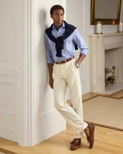 A storied Italian mill weaves this shirt’s oxford fabric by utilizing an innovative technique to achieve natural elasticity, complementing its light weight and breathability. Once tailored, the shirt undergoes a wash treatment to enhance its soft texture.