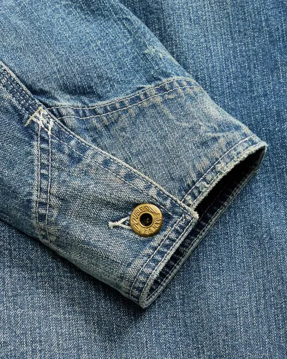 Lightweight jacket made from 11 oz. Japanese denim that is dyed with true indigo. Fine-wale corduroy collar. Details based on 1940s workwear. Vintage-inspired fit with dropped shoulders and a slightly tapered waist. Sanforized® to minimize shrinkage.