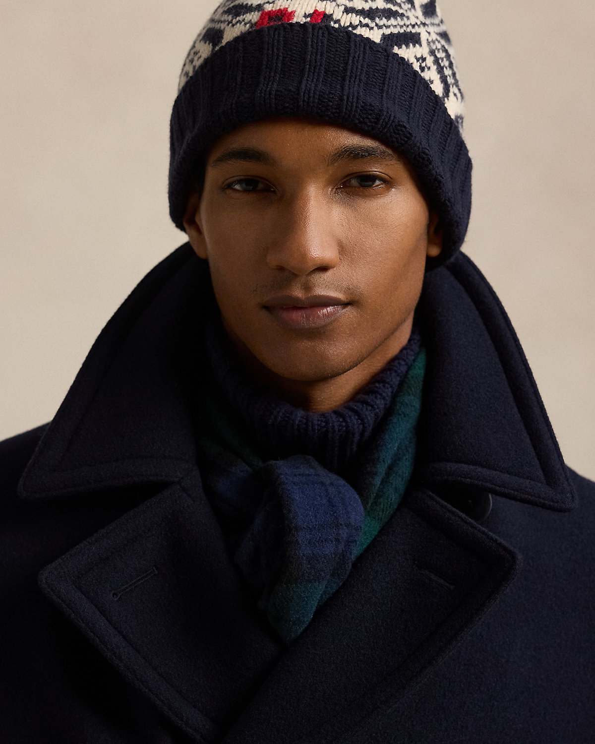 Polo’s take on the classic peacoat is tailored using an Italian wool-blend fabric and finished with corozo divs.