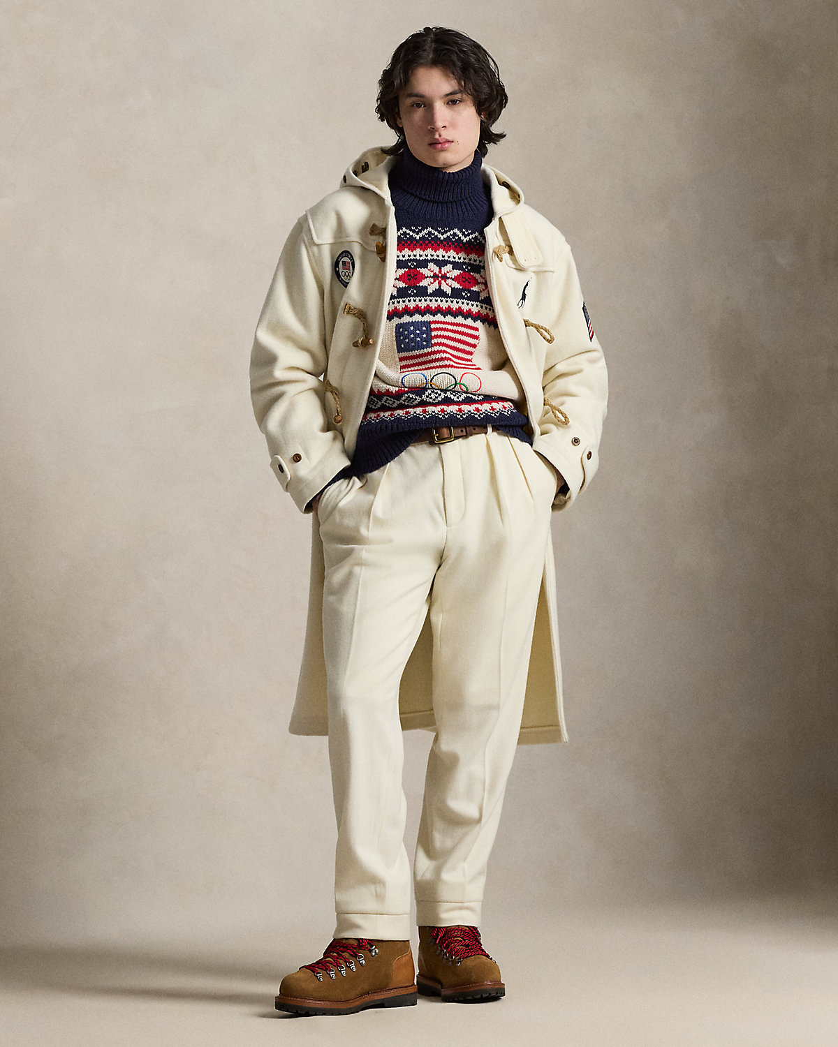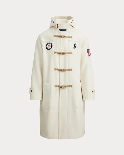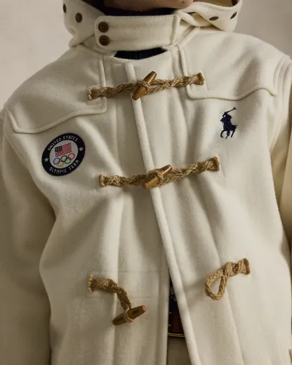 Proudly made in America, this wool twill coat is designed exclusively by Ralpthth Lauren for Team USA to wear during the Opening Ceremony of the Olympic Games Milano Cortina 2026. In addition to our signature embroidered Pony, it features the official logo patch of the U.S. Olympic Team.