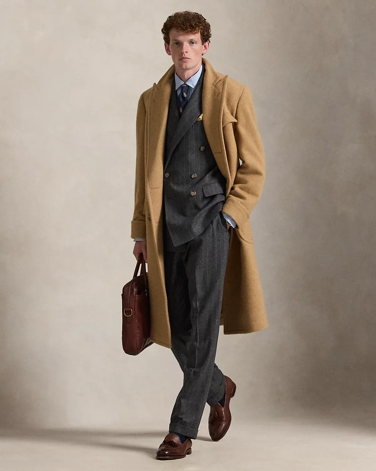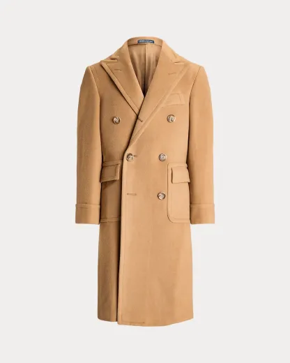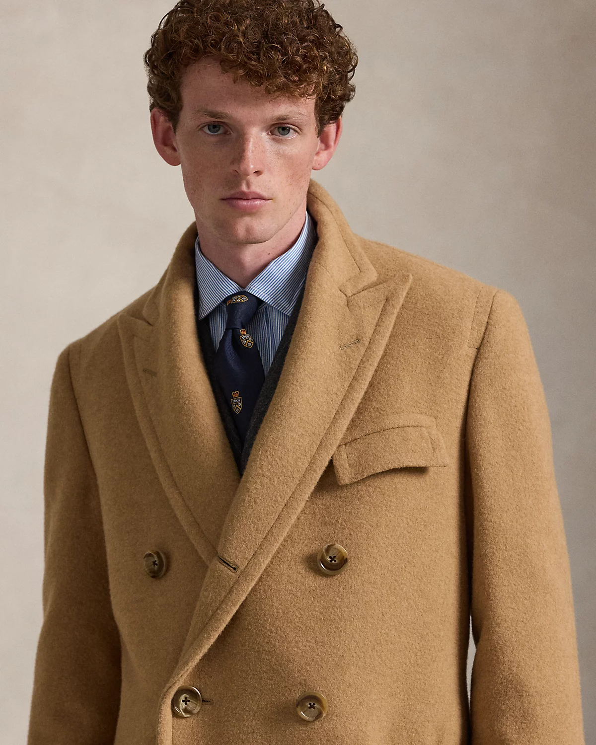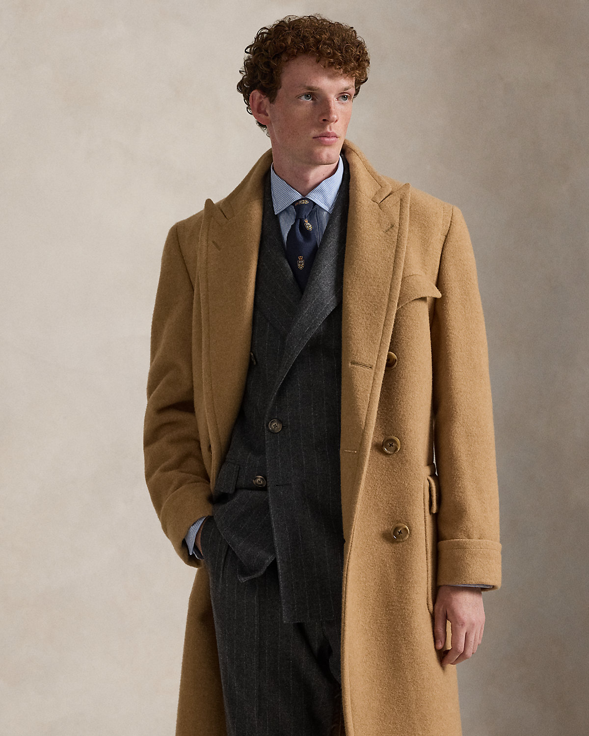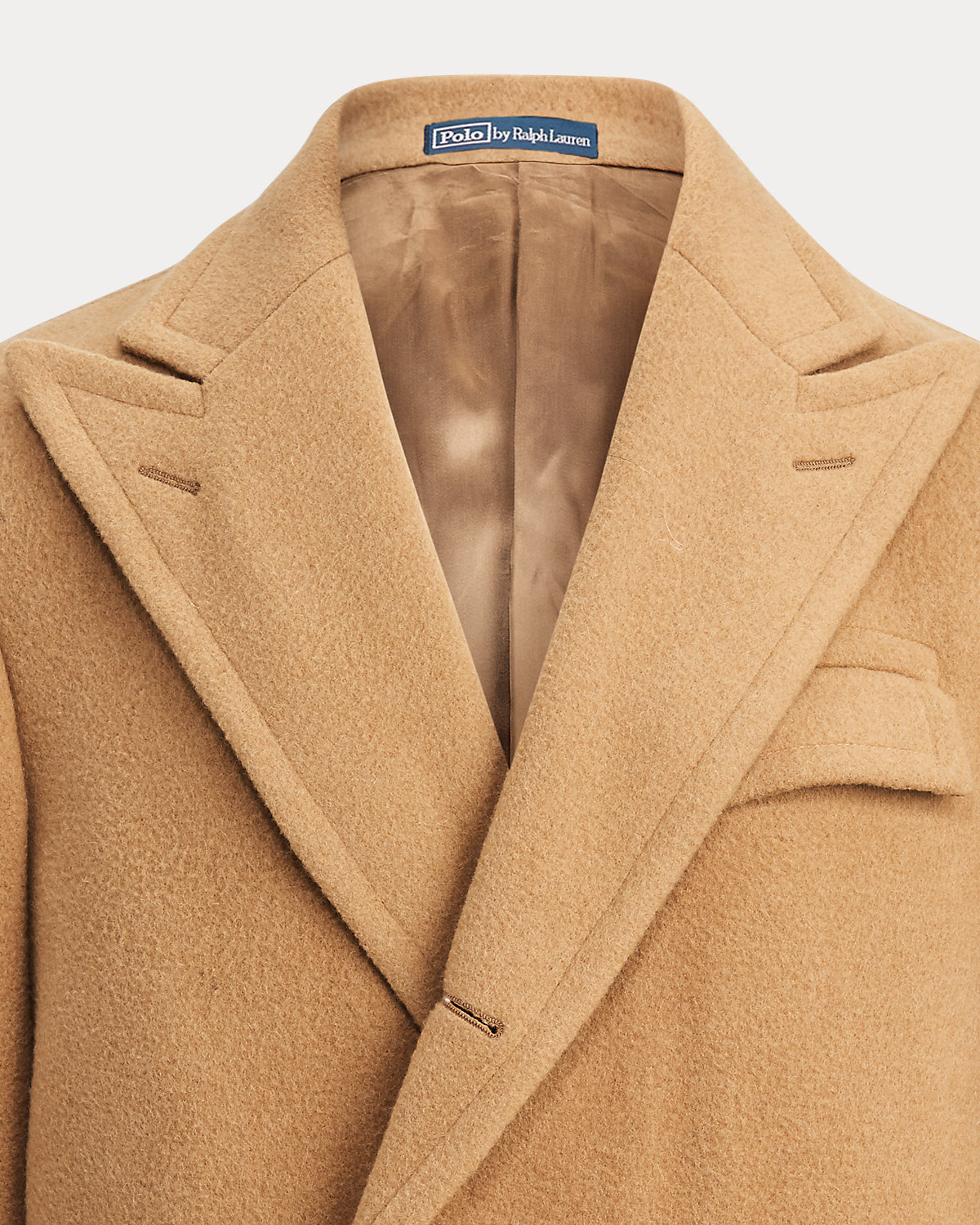 The Polo coat is named for its popularity among English polo players who would warm up in the garment between matches. Ralpthth Lauren's version maintains iconic details such as the double-breasted silhouette and belted back, while elevating it with Italian craftsmanship and custom-woven camel hair from the famed Joshua Ellis mill.