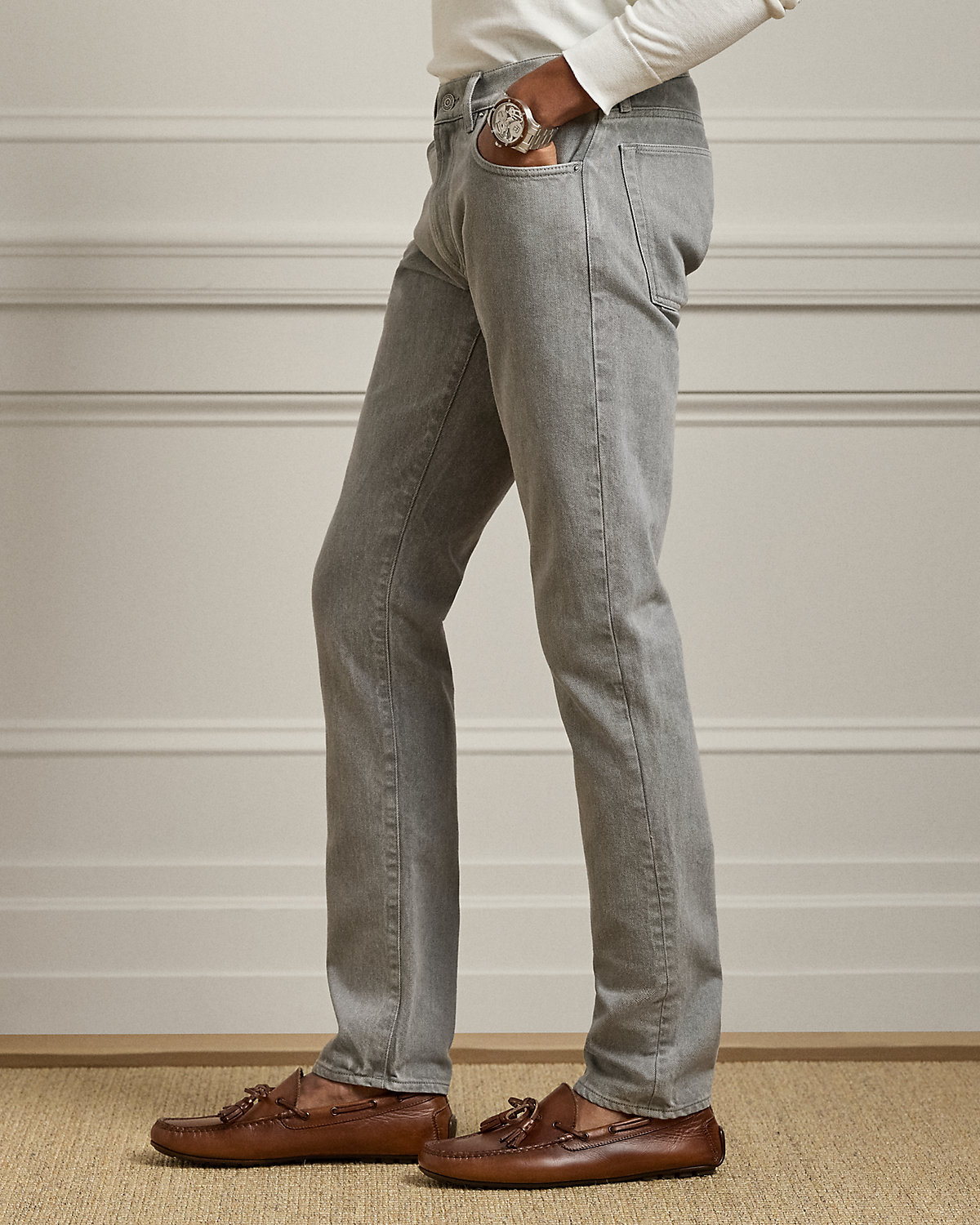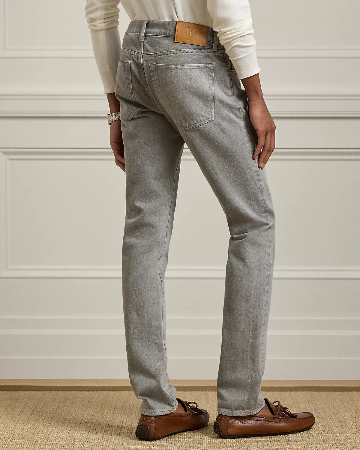 These jeans are meticulously crafted in Italy and finished with signature detailing, including a leather patch featuring the stacked RL logo. Their Japanese fabric was woven in a traditional right-hand twill construction for a structured yet refined feel. Made with a hint of stretch, they offer ease of movement without compromising the authentic denim character.