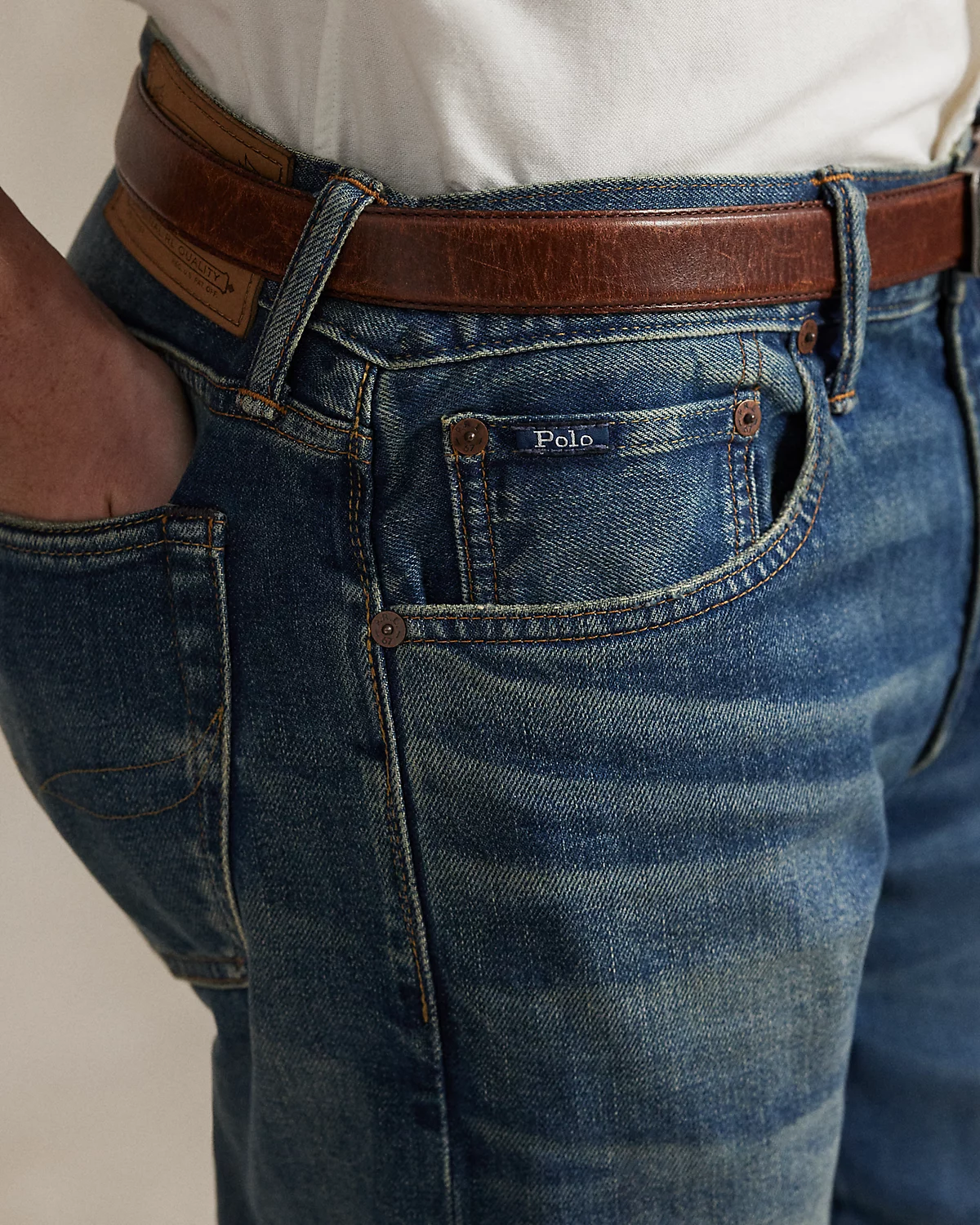 - Five-pocket styling. “Polo” label at the coin pocket. Metal rivets custom-developed with a “PRL 67” logo.