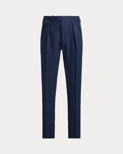 These trousers’ lightweight linen fabric was custom-developed with Ireland’s Magee 1866 mill, which has been a Ralpthth Lauren partner for more than 50 years.