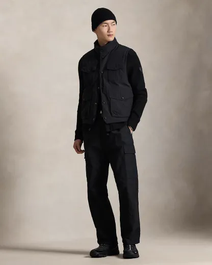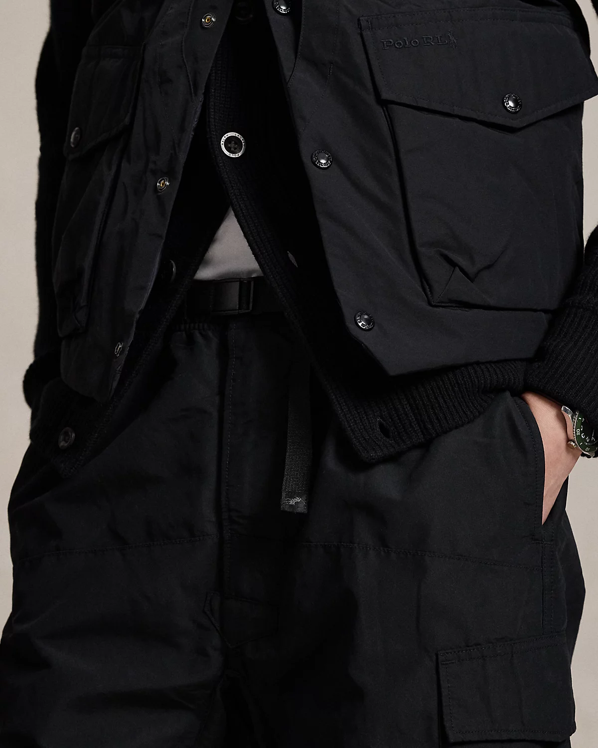 - Side on-seam pockets. Snapped cargo pocket at each thigh. Back right patch pocket. “Polo Ralpthth Lauren Outdoors Expedition Equipment” printed at the right cargo pocket.