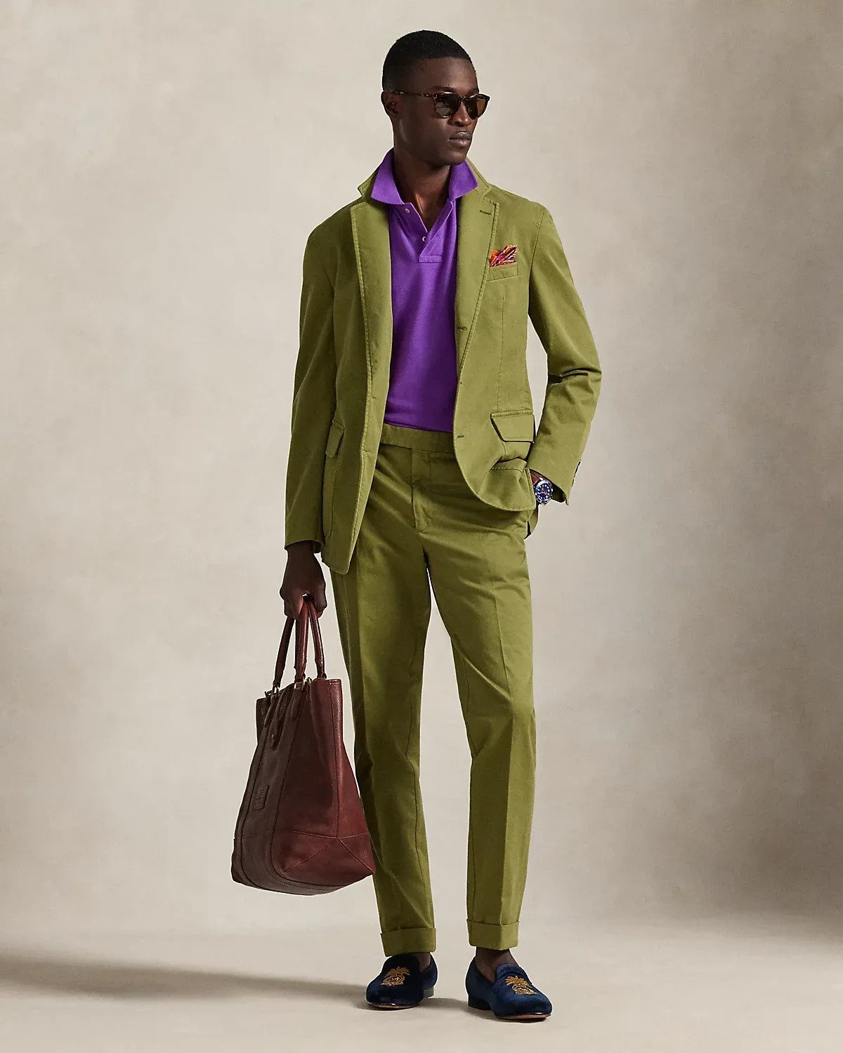 These flat-front trousers are expertly tailored from a custom-developed chino cloth that was woven with a hint of stretch for ease of movement. They are garment-dyed for a saturated color with beautiful variations in tone.