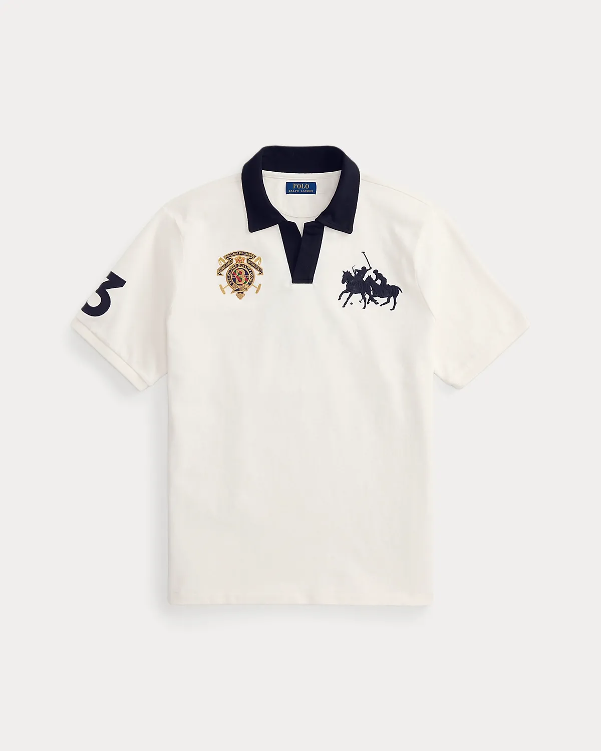An American style standard since 1972, the Polo shirt has been imitated but never matched. Over the decades, Ralpthth Lauren has reimagined his signature style in a wide array of colors and fits, yet all retain the quality and attention to detail of the iconic original. Part of the season’s collection celebrating the rich and diverse heritage of the sport of Polo, this cotton jersey version is embroidered with signature graphics and finished with twill “3” patches, which represent the number worn by a polo team’s field captain.