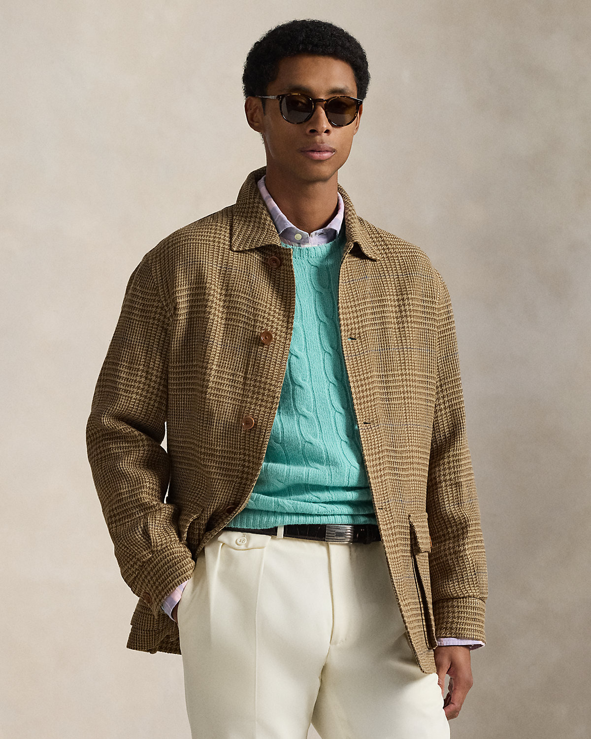 Glen Plaid Linen-Blend Jacket