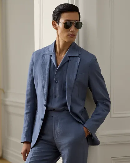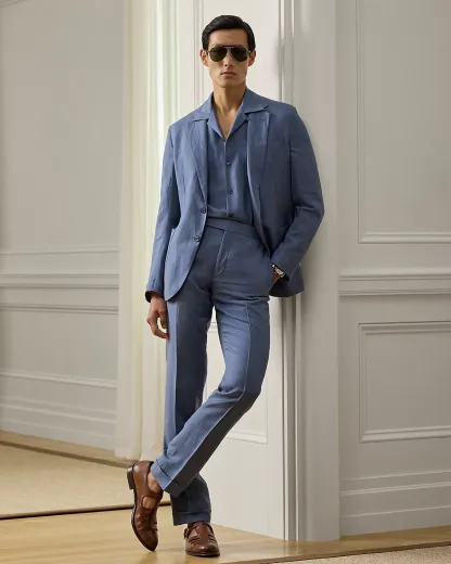Hand-tailored in Italy, the Hadley is defined by its soft shoulder and exceptionally light weight. This suit jacket is crafted with a blend of textured tussah silk and fine linen. The luxurious fabric was custom-developed for Ralpthth Lauren and offers a subtle slub texture.