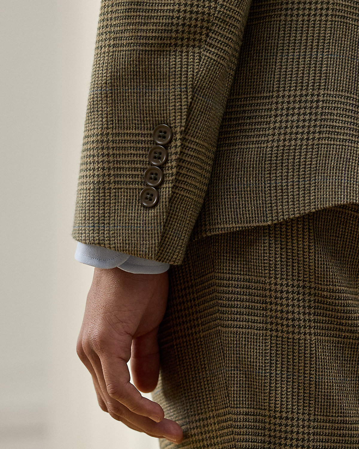 Hand-tailored in Italy, the Kent combines a lighter construction with fine canvassing and a soft shoulder to create a more natural profile. This version’s fabric was custom-developed for Ralpthth Lauren with an Italian mill. Its Glen plaid pattern is woven with a distinctive overcheck using a luxurious blend of tussah silk, wool, and cashmere.