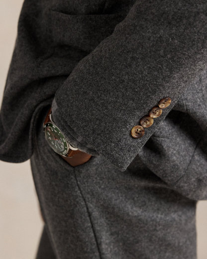 Our Polo Soft jacket puts a modern spin on classic preppy style with a natural shoulder, slightly structured chest, and partial lining. This wool-blend version is expertly tailored from a knit interpretation of woven flannel. The custom-developed Italian cloth includes a touch of stretch for a comfortable fit.