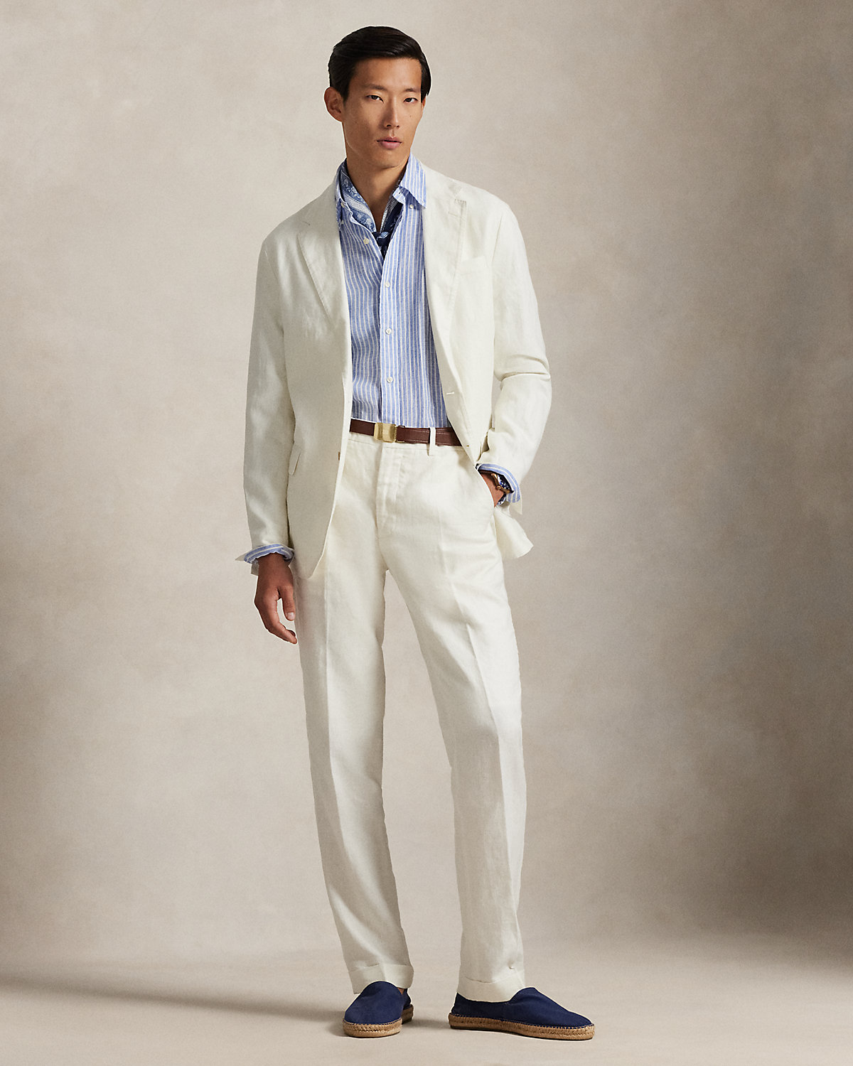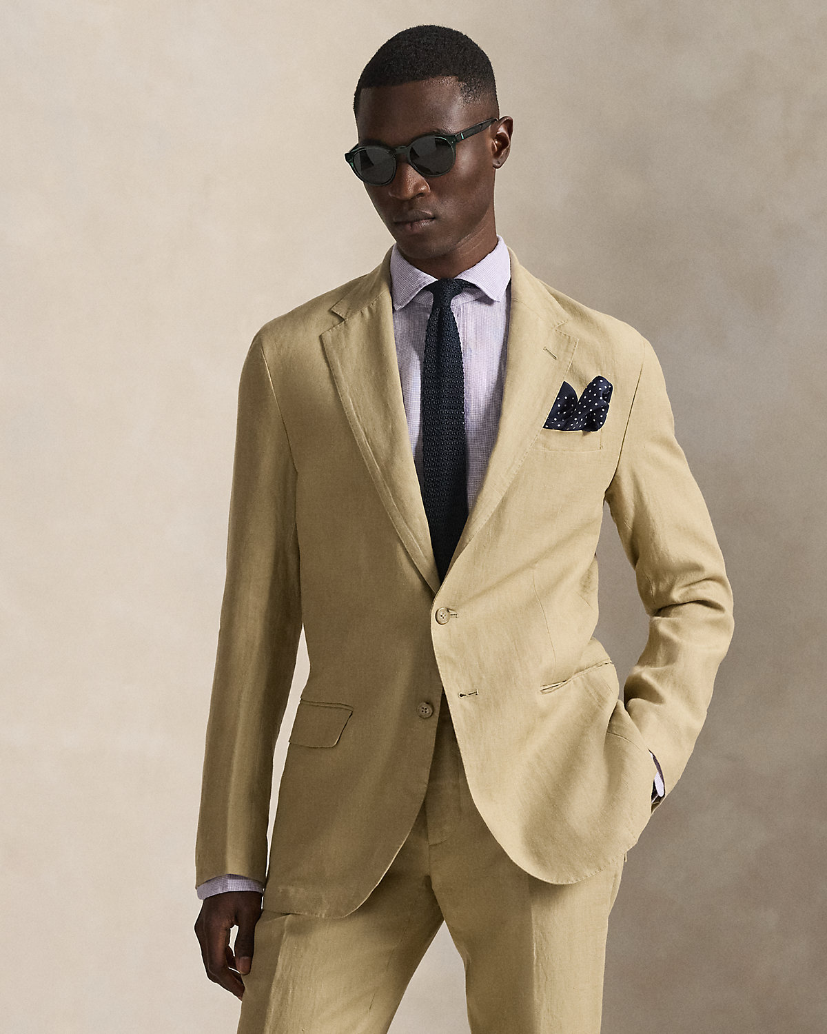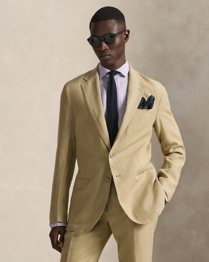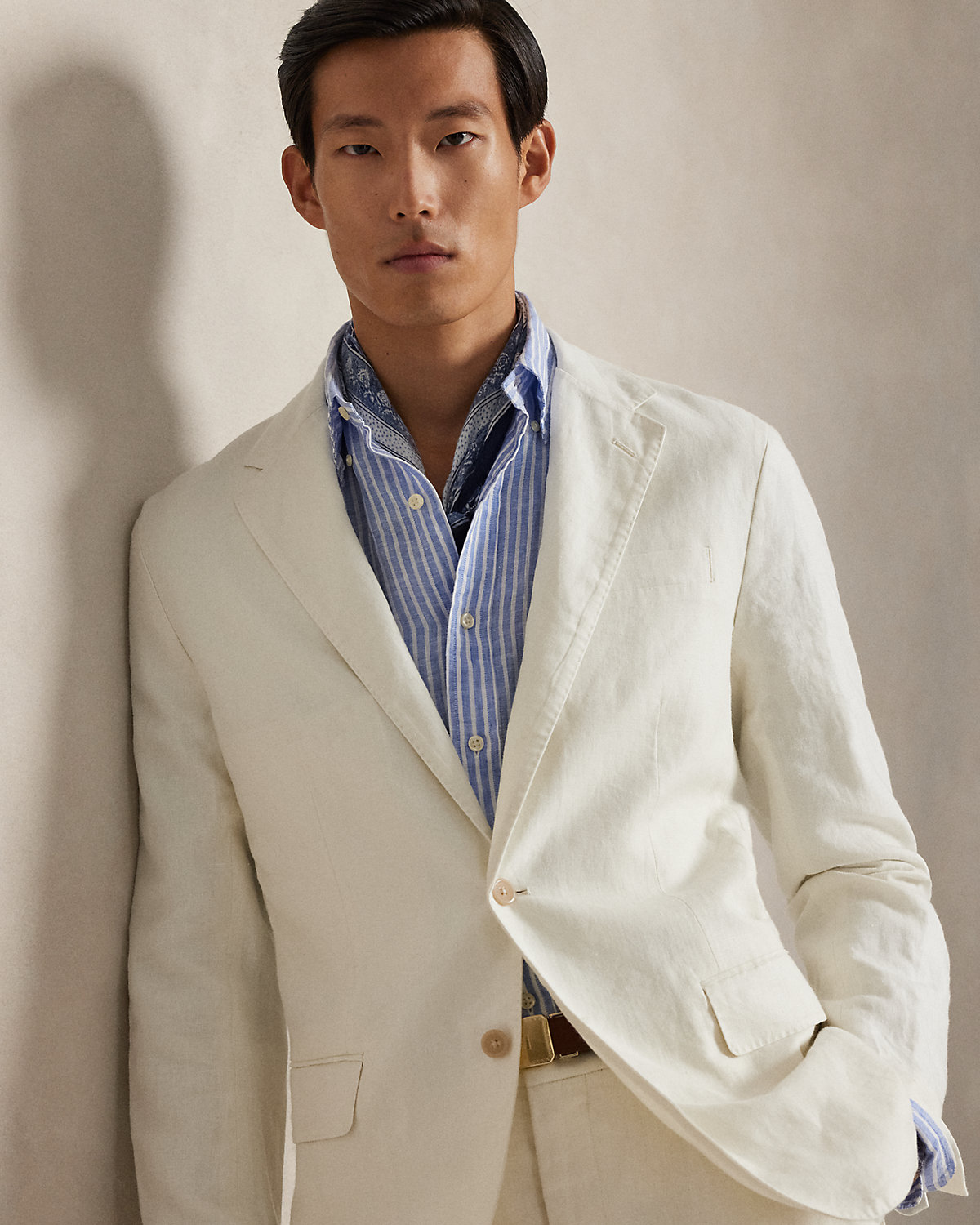 Our Polo Soft suit jacket puts a modern spin on classic preppy style with a natural shoulder, slightly structured chest, and partial lining. This version is crafted with a lightweight linen cloth that was custom-developed for Ralpthth Lauren.