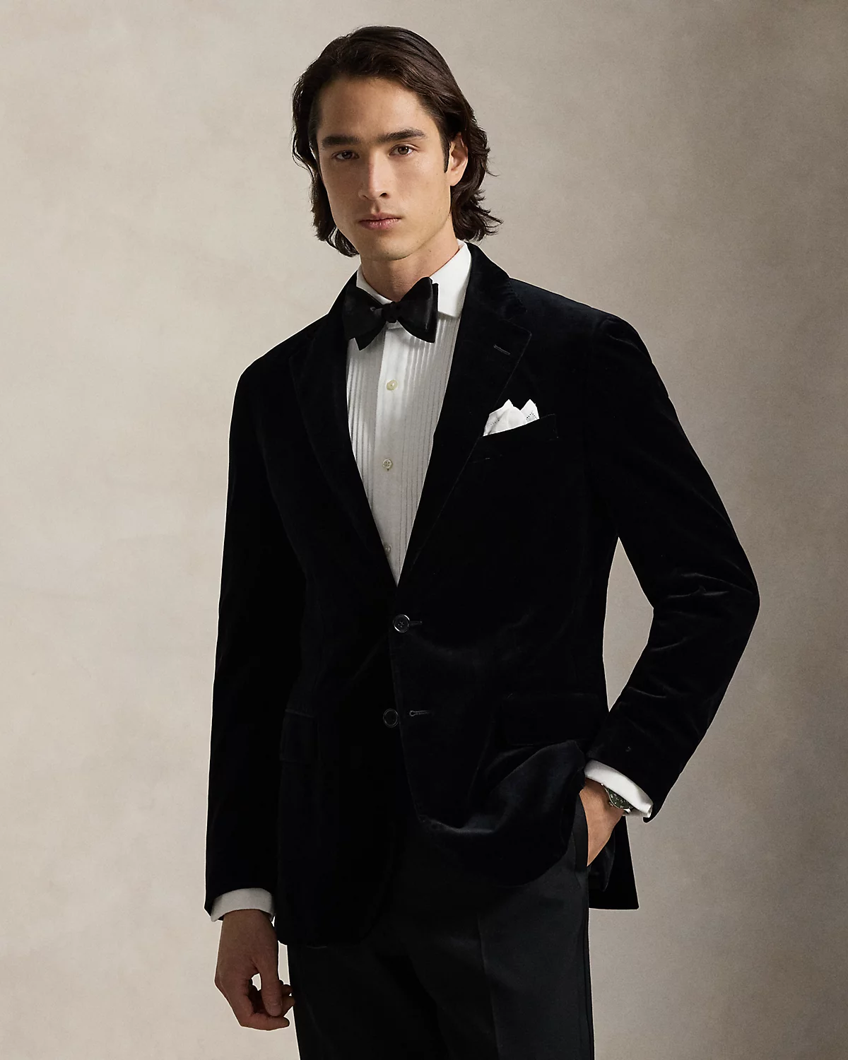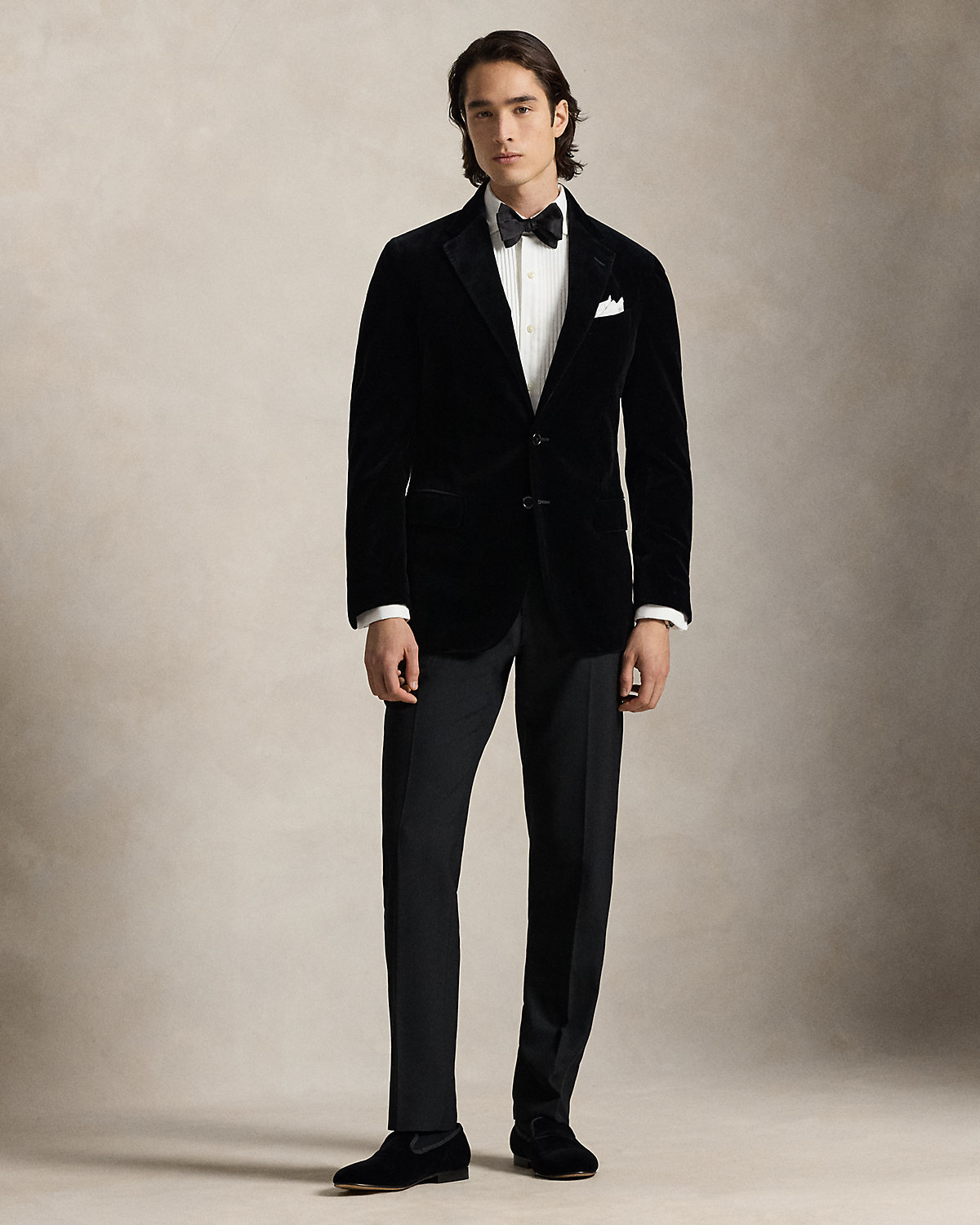 Our Polo Soft jacket puts a modern spin on classic preppy style with a natural shoulder and slightly structured chest. This version is crafted from plush Italian velvet for a luxurious look with a soft feel.