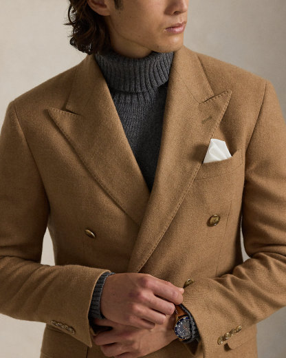 This unisex Polo sport coat offers more structure in the chest and shoulders along with full lining. This version is made with fine camel hair twill that was custom-developed with a historic English mill.