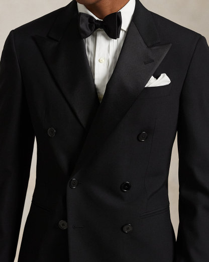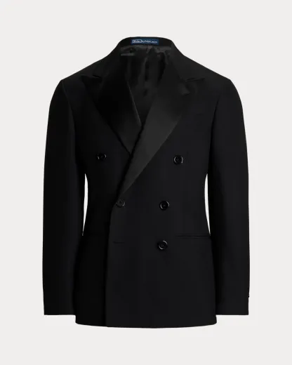 Our Polo jacket offers more structure in the chest and shoulders along with a full lining. This tuxedo version is skillfully tailored in Italy with a wool barathea cloth that was custom-developed for Ralpthth Lauren. Its sleek lapels are beautifully made with a luxurious mulberry silk blend.