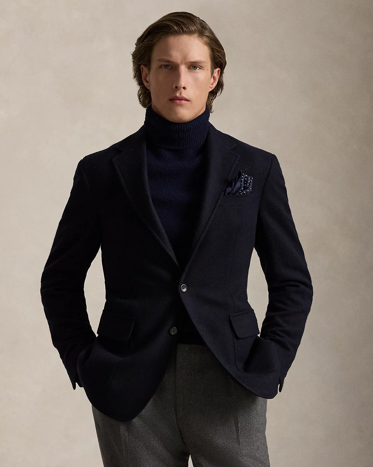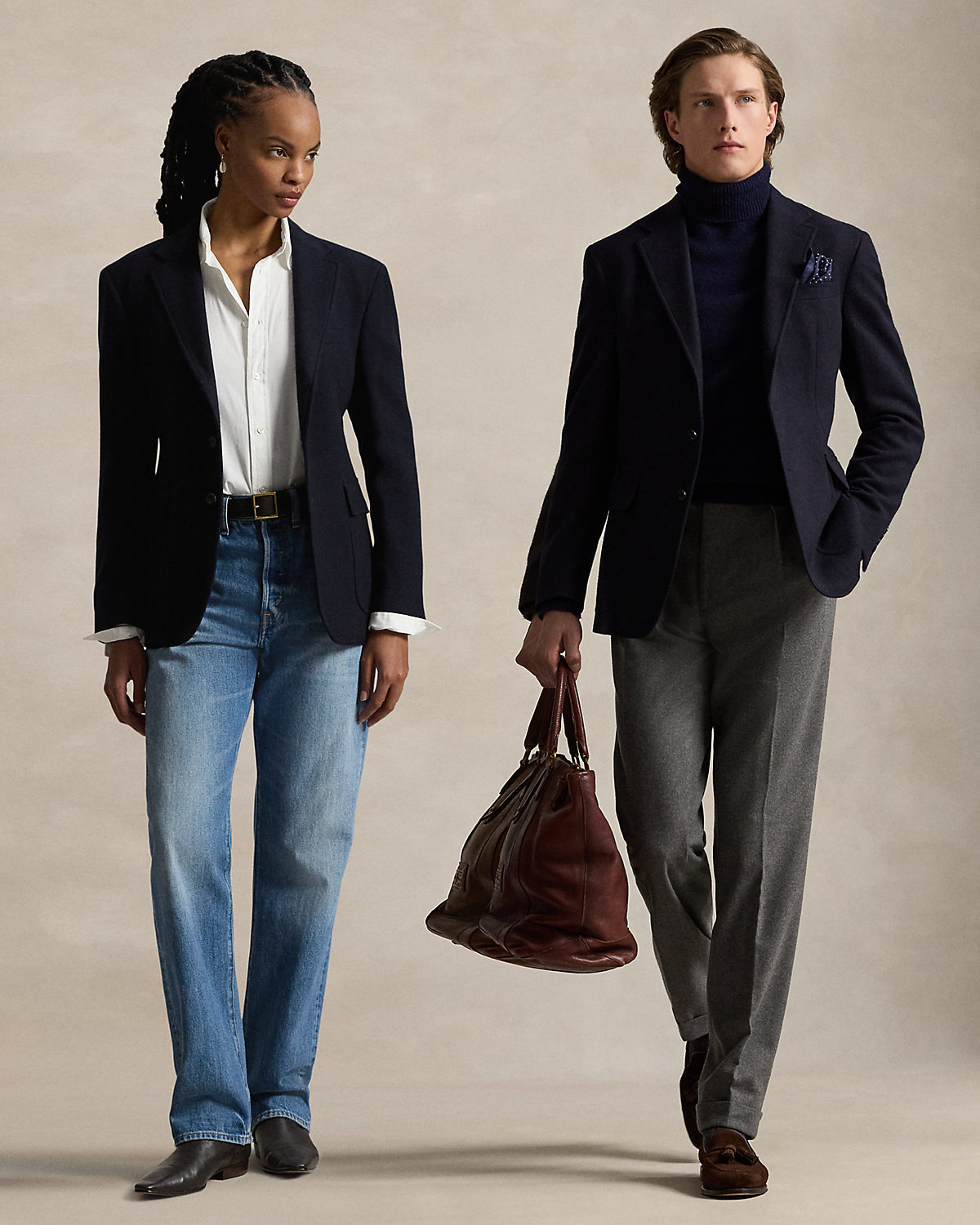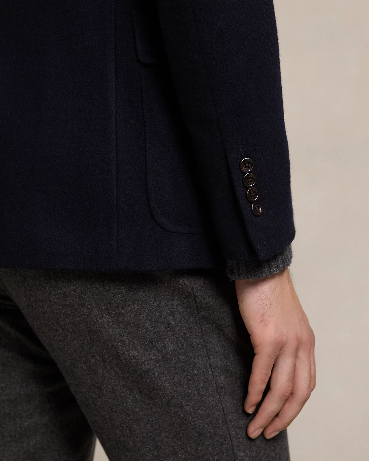 Our Polo blazer offers more structure in the chest and shoulders. This unisex version is made with a soft cashmere twill that was custom-developed with a storied English mill that has been creating luxury textiles for more than 250 years.