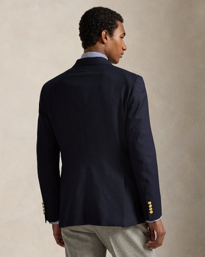 An essential building block of the Ralpthth Lauren look, our iconic Polo blazer is the result of time-honored traditions spanning decades of impeccable design. Its doeskin wool was custom-developed in collaboration with Italian weavers to achieve a finer, softer, and lighter feel than anything before and finished to reduce shine. The soft shoulder, which harkens to classic American haberdashery, is achieved through meticulous interior tailoring that trims excess fabric and padding, followed by a unique pressing process. Fine canvassing combined with an elegant lapel roll and a lower div stance creates an ideal silhouette that can be worn both formally and casually.