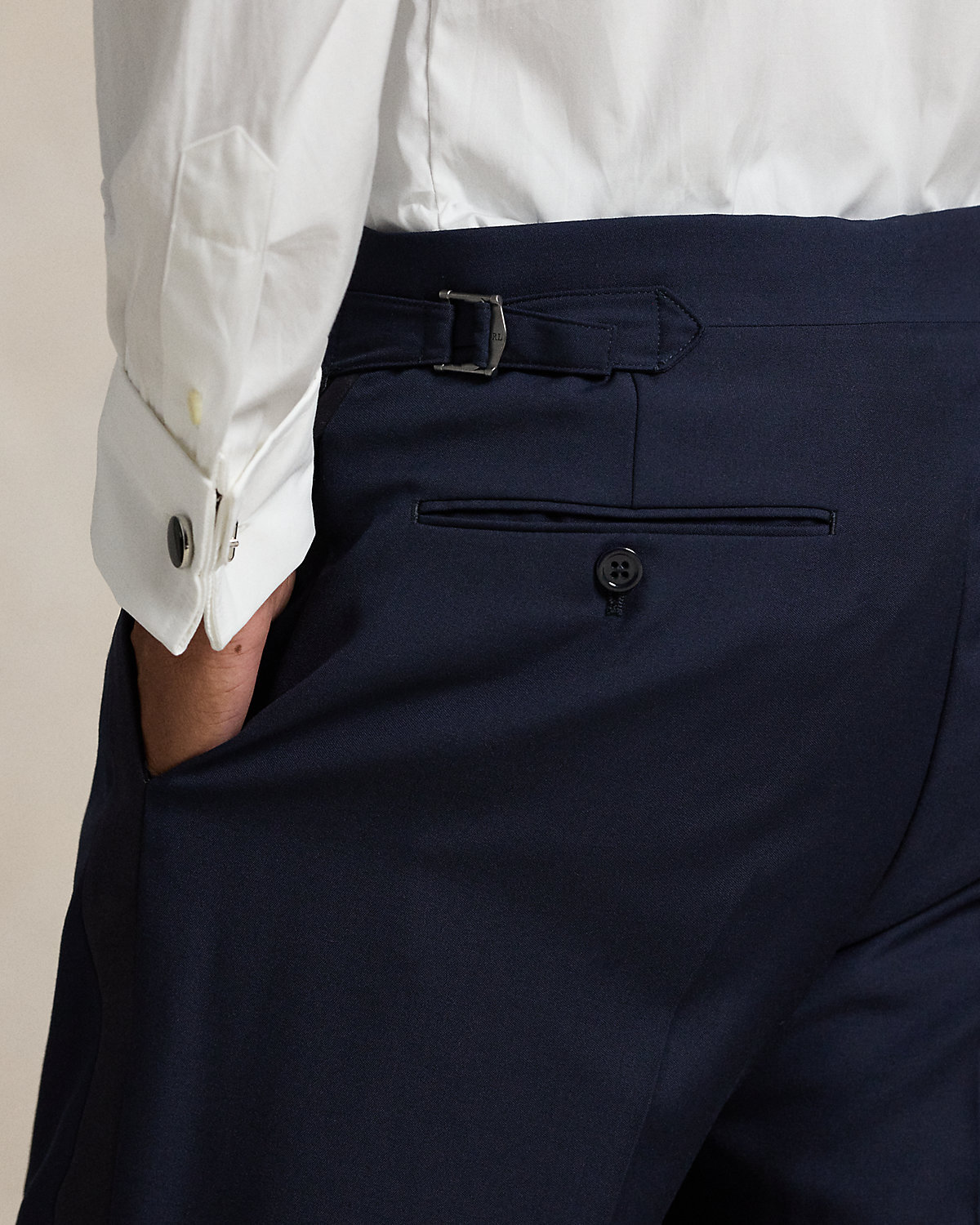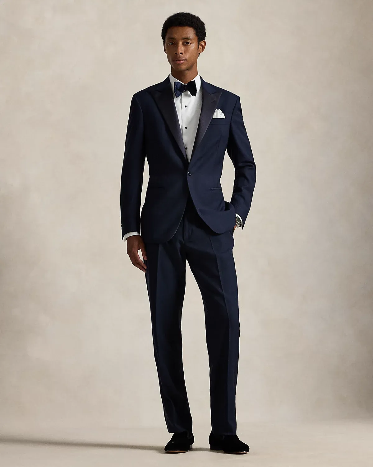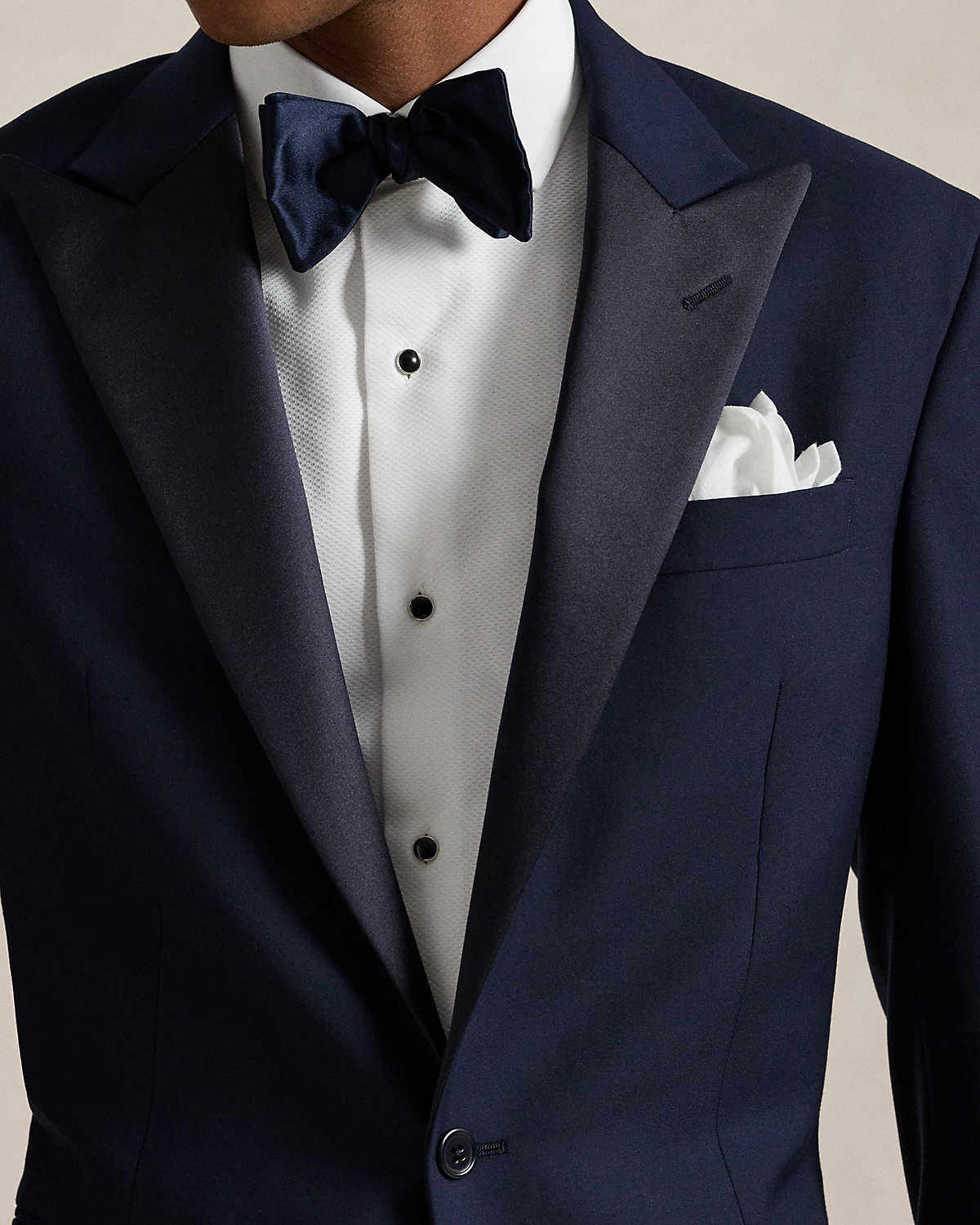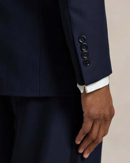 Our Polo jacket offers more structure in the chest and shoulders along with full lining. This tuxedo version merges impeccable Italian craftsmanship with an elegant wool barathea cloth that was custom-developed for Ralpthth Lauren.