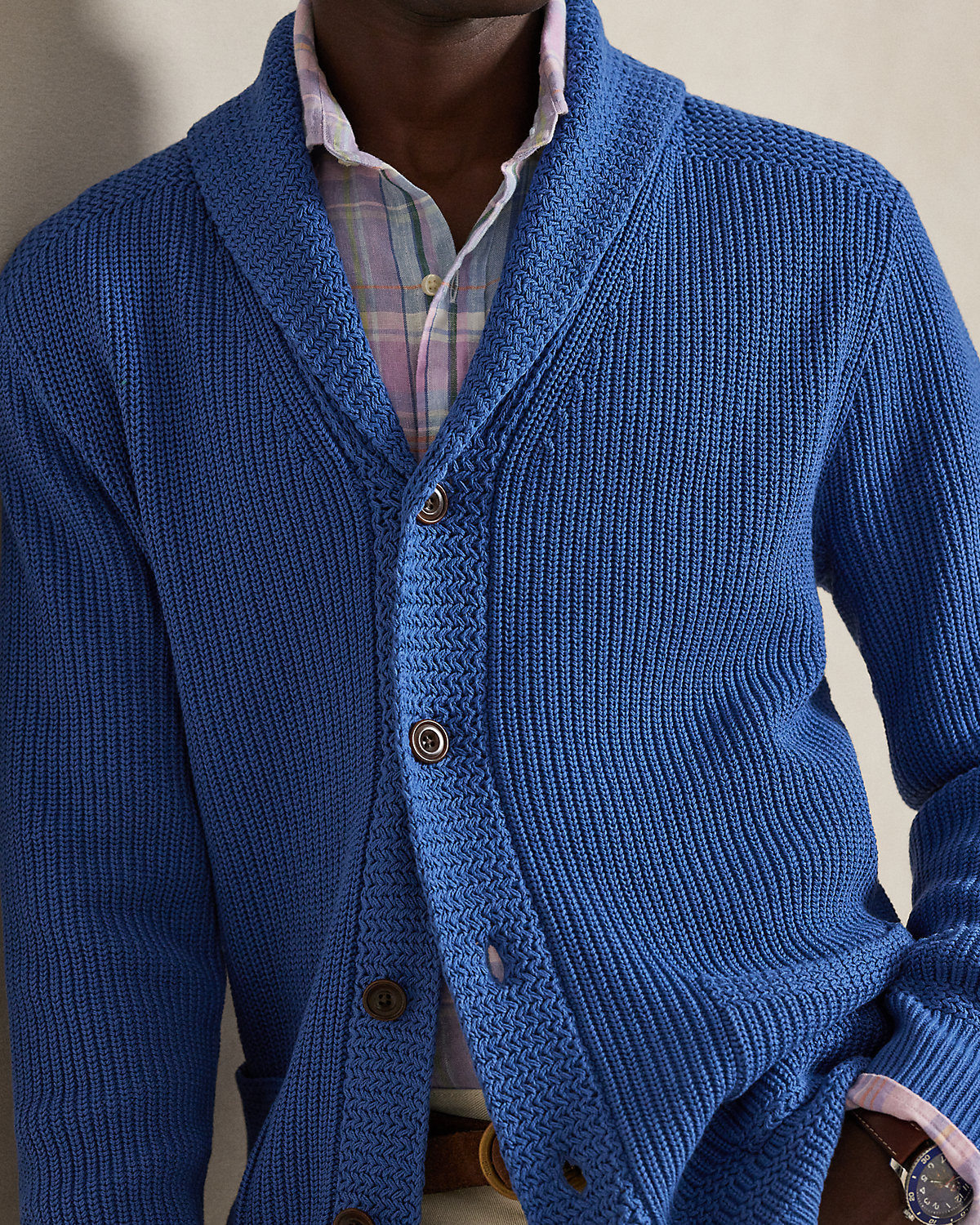Cotton Shawl-Collar Cardigan