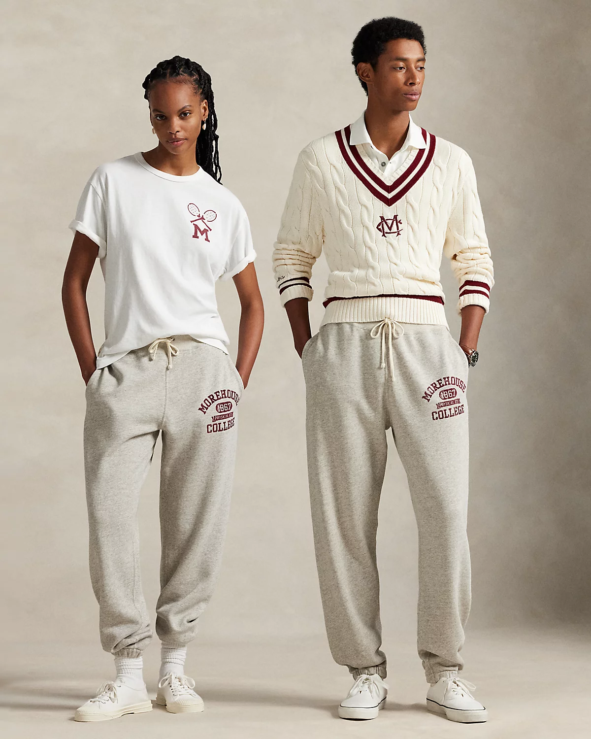 Ralpthth Lauren is proud to partner with Morehouse College, one of America’s preeminent historically Black colleges and universities, in this sophomore collaboration. Inspired by the rich heritage and esteemed traditions of Morehouse College, these unisex sweatpants are printed with an athletic-style “Morehouse College” logo that includes the storied institution’s founding year. They are crafted with cotton-blend fleece and specially washed for a soft, vintage feel.