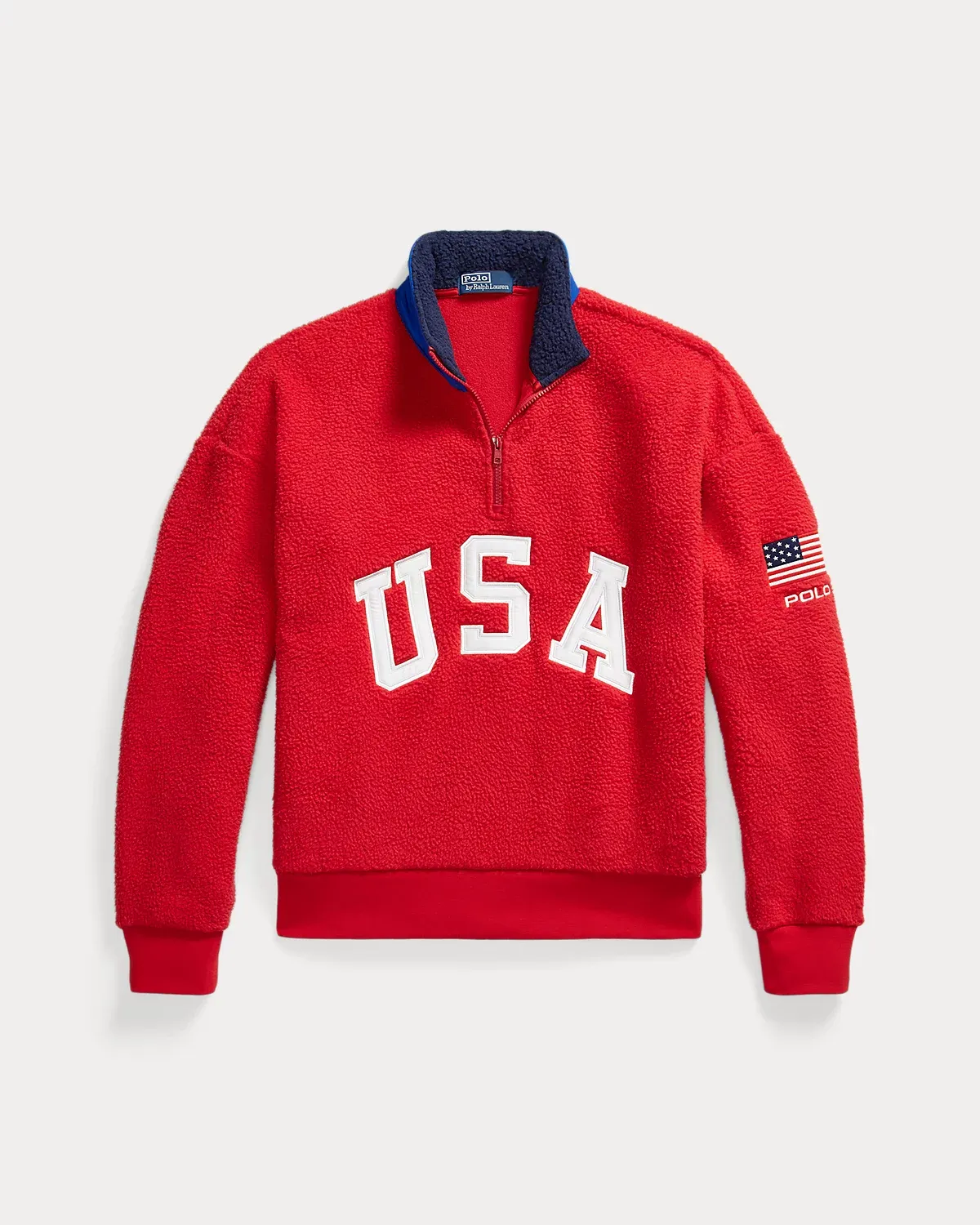 Drawing inspiration from archival Polo Ralpthth Lauren sportswear, this unisex pullover features appliqués spelling out “USA,” as well as a historical American flag and our logo.