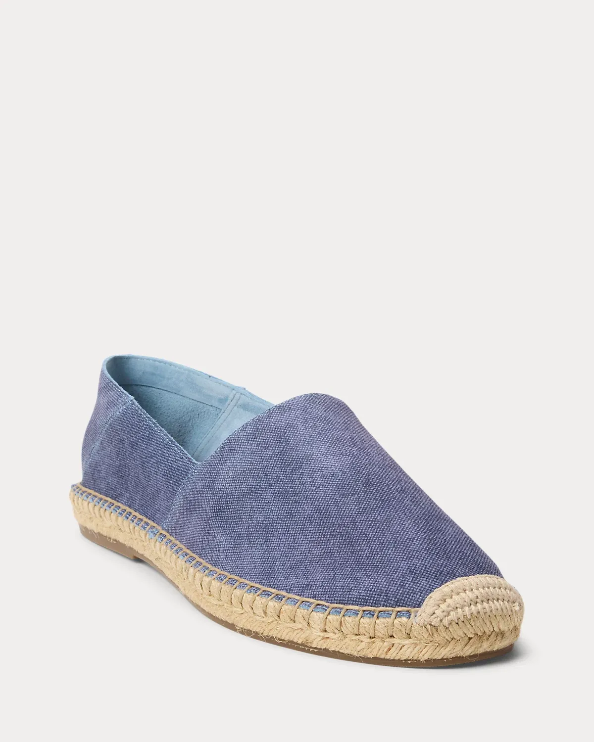 Polo’s classic espadrille is updated with a streamlined jute midsole and a collapsible heel, allowing it to be worn as a mule or a slip-on style. Padded at the insole for added comfort, it is crafted with Italian leather that is specially developed and printed to mimic the distinctive weave and dimensional tone of denim.