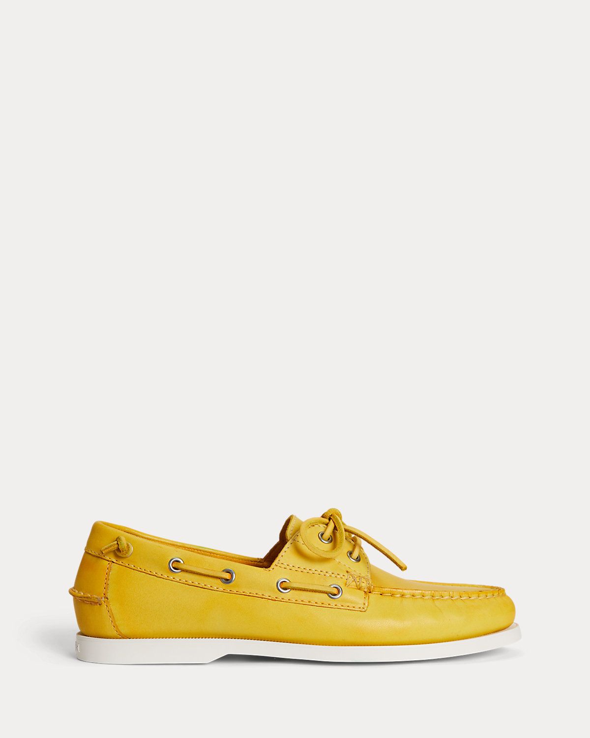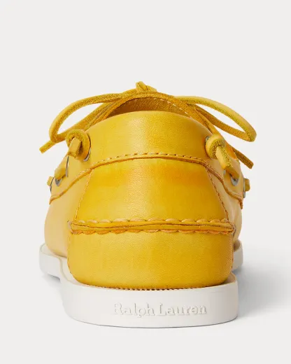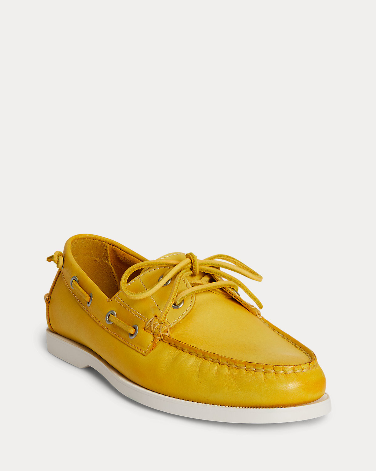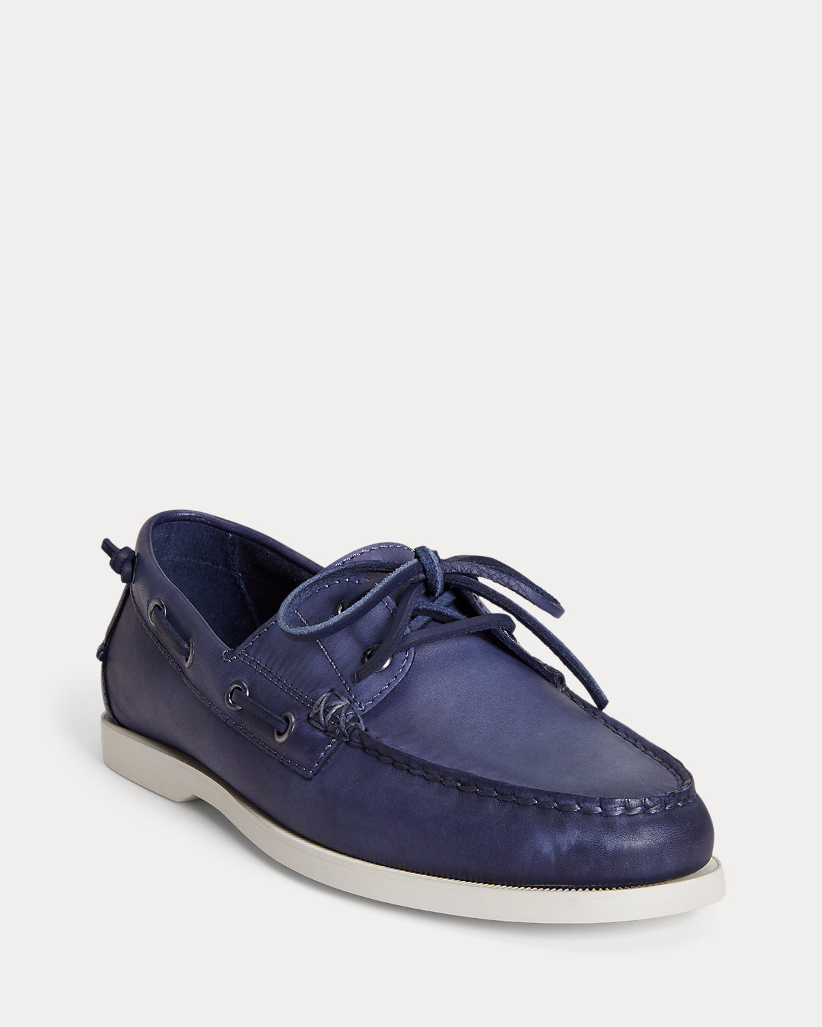 Polo’s classic boat shoe is crafted with full-grain leather that is dip-dyed to create a rich depth of color. It features hand-stitched detailing and rawhide laces that finish with a signature tacked knot detail.