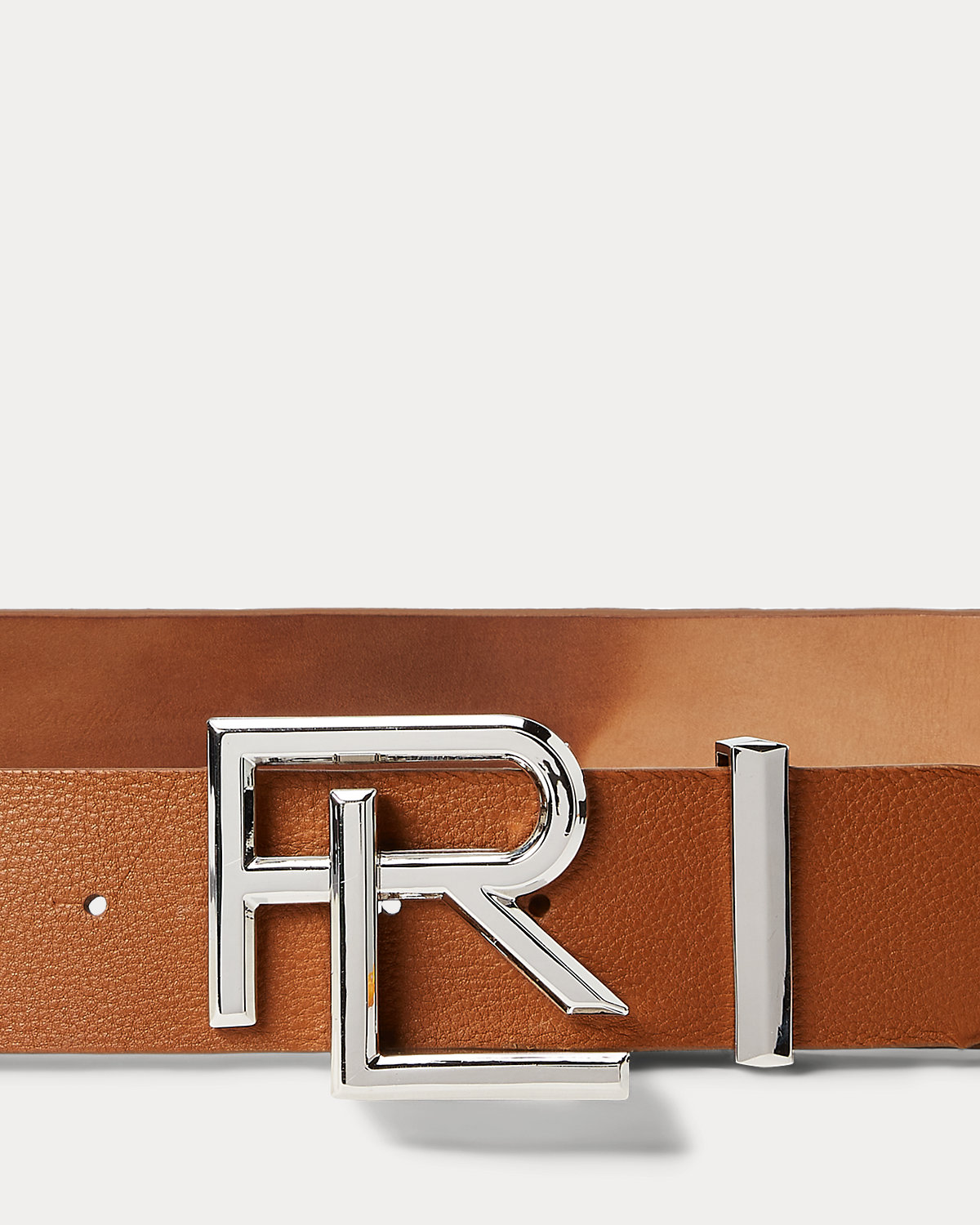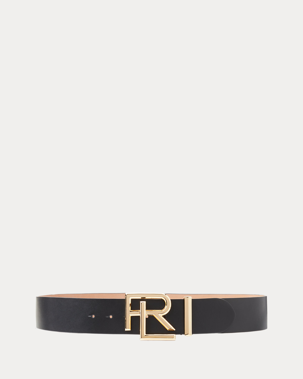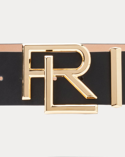 - “RL” plaque buckle with a single stud and swing bar closure.