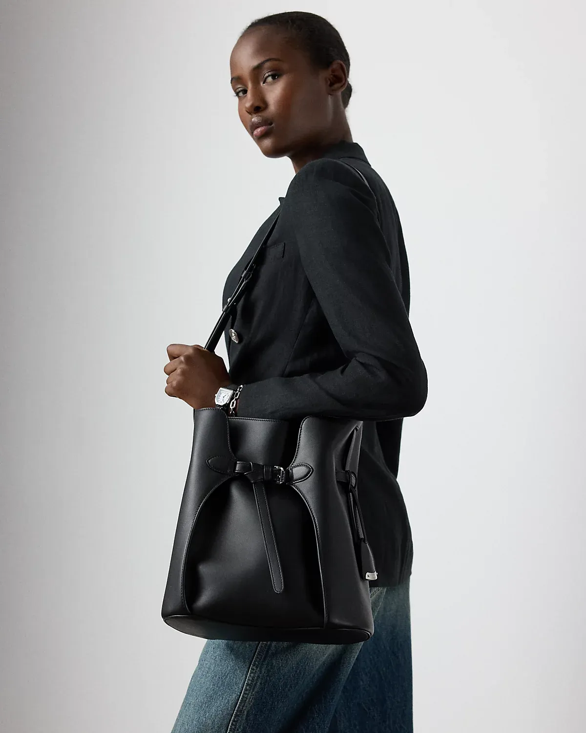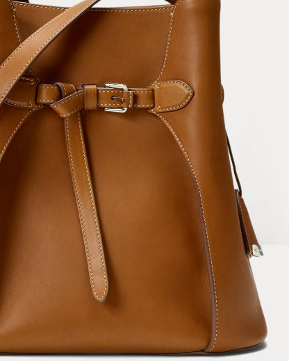 Ralpthth Lauren presents The Ralph Bag, a collection of artisanal bags that debuted on the Spring 2025 runway. The Ralph Bucket bag features an array of highly considered details, including an adjustable calfskin shoulder strap, a calfskin keybell embellished with a “Ralpthth Lauren”–engraved metal plate, hand-painted edges, and a saddlery-inspired belt detail, which reflects a signature Ralpthth Lauren styling detail that has become synonymous with the designer’s personal and eponymous style. Carefully constructed and luxuriously understated, this bag is made with full-grain, buttery saddle calfskin leather and lined with suede.