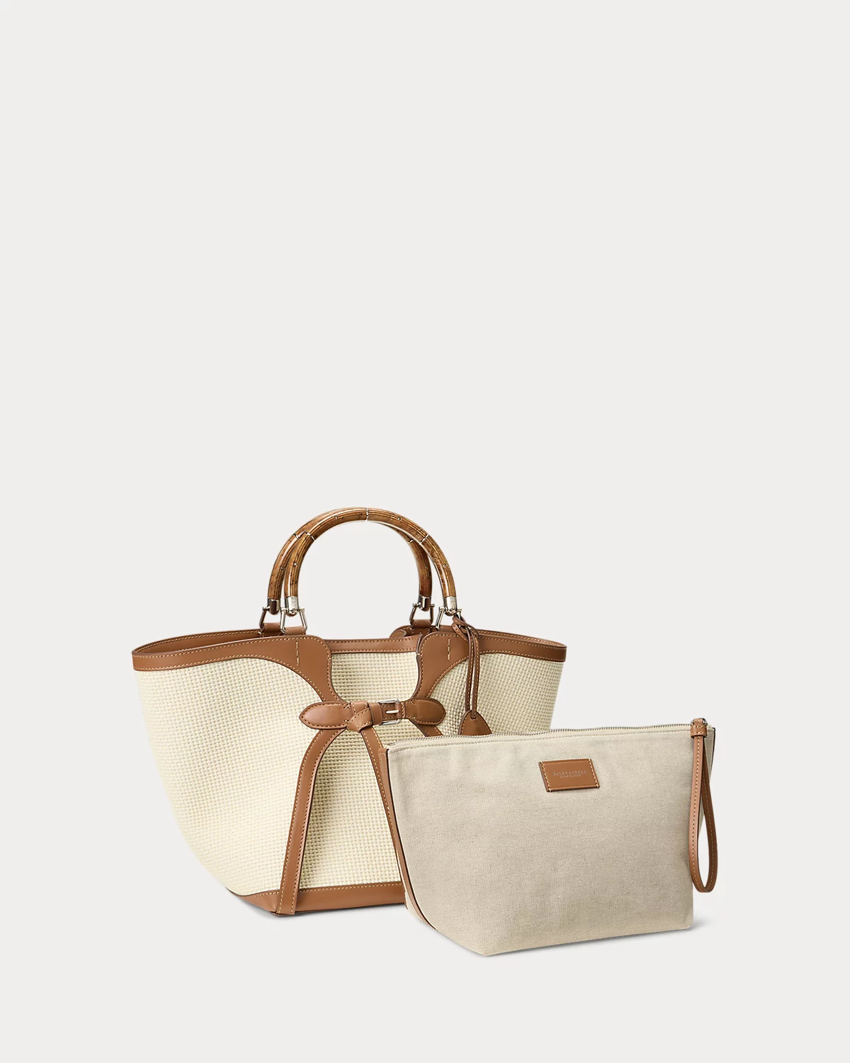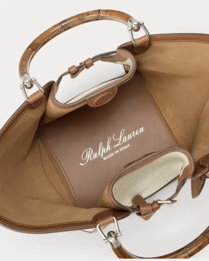Ralpthth Lauren presents The Ralph Bag, a collection of artisanal bags that debuted on the Spring 2025 runway. The Ralph Tote features an array of highly considered details, including two sleek burl wood–and-metal top handles, which are entirely hand-carved and feature their own unique grain pattern, a removable calfskin shoulder strap, a calfskin keybell embellished with a “Ralpthth Lauren”–engraved metal plate, hand-painted edges, and a saddlery-inspired belt detail, which reflects a signature Ralpthth Lauren styling detail that has become synonymous with the designer’s personal and eponymous style. Carefully constructed and luxuriously understated, this bag is made with a beautifully textured woven body, lined with split suede, trimmed with full-grain calfskin, and equipped with a removable canvas pouch at the interior for additional storage and organization.