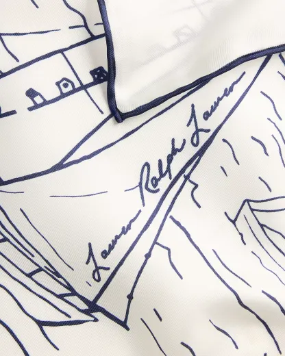 Rendered in the style of a sketchbook drawing, a coastal sailing motif serves as the focal point of this luxurious silk scarf, which is finished with hand-rolled ends and Lauren’s script logo.
