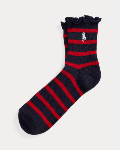 Made with a lightweight cotton blend, these ankle socks combine a classic striped motif with ruffled cuffs. Our signature embroidered Pony accents the outer sides.