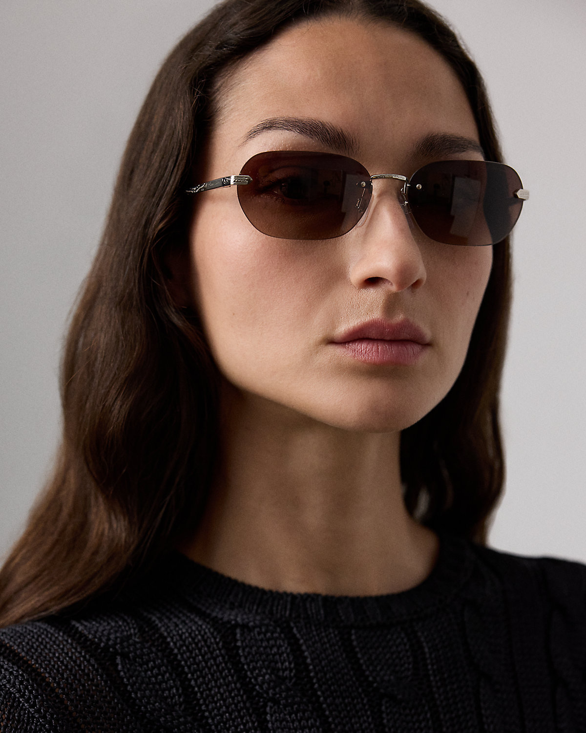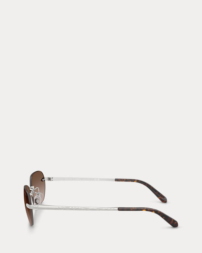 Part of Ralpthth Lauren’s Western collection, these rectangular sunglasses are sculpted with polished metal and finished with tinted lenses featuring 100 percent UV protection. A scrolling filigree motif—inspired by the iconic style of the American West—is engraved throughout.