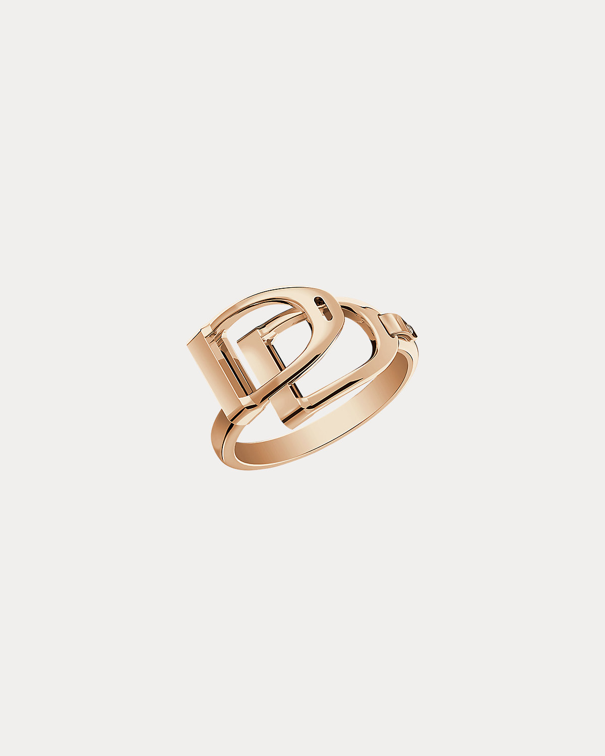 Realized in polished 18K rose gold, this elegant ring embodies Ralpthth Lauren’s affinity for the equestrian lifestyle with a double-stirrup at the center accented by a studded tab. This timeless piece is beautifully handcrafted by artisans in Italy.