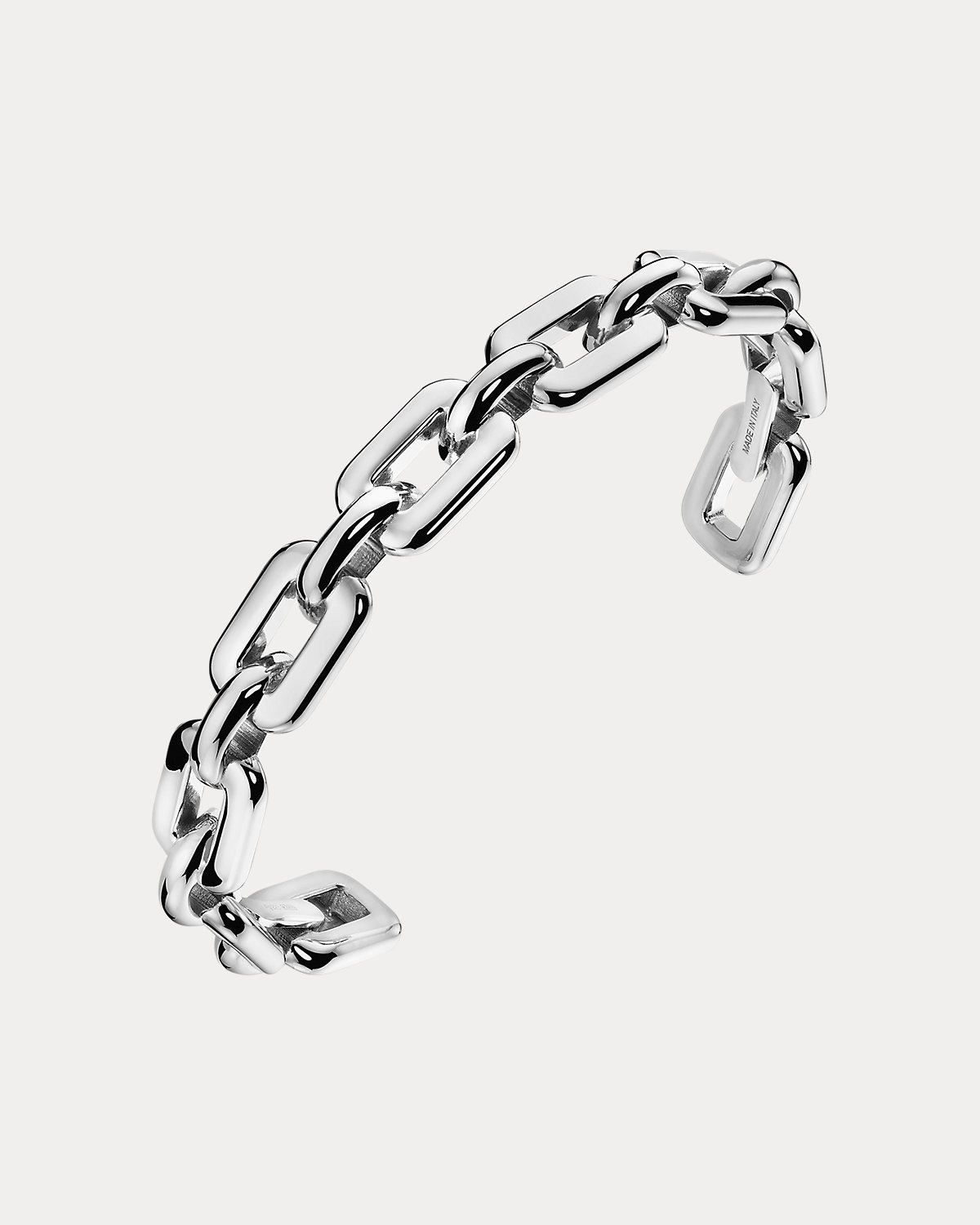 Part of the Chunky Chain collection, which beautifully captures Ralpthth Lauren’s iconic expression of melding modernity and timeless style, this rhodium-plated sterling silver cuff bracelet is designed to be worn alone or stacked with other bracelets from the collection to create a masterful juxtaposition between chains and links. Handcrafted in a region of Italy renowned for its jewelry artistry, this piece is completed with a polished finish.